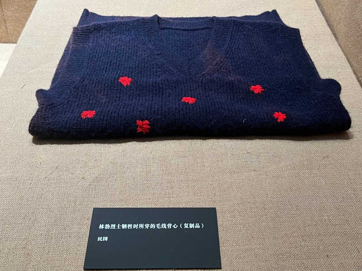 第二天清晨,余也萍和战友找到林勃的遗体,发现他那件藏青色毛线背心上满是被日寇用刺刀戳出的洞。她和战友及当地群众一起给林勃换上干净的衣服,将他就地安葬。