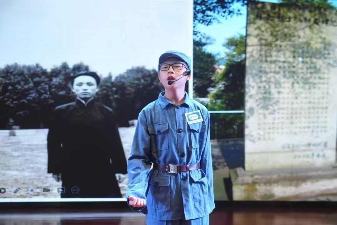 学生杨宇轩在话剧《英雄的热土》中饰演林勃。