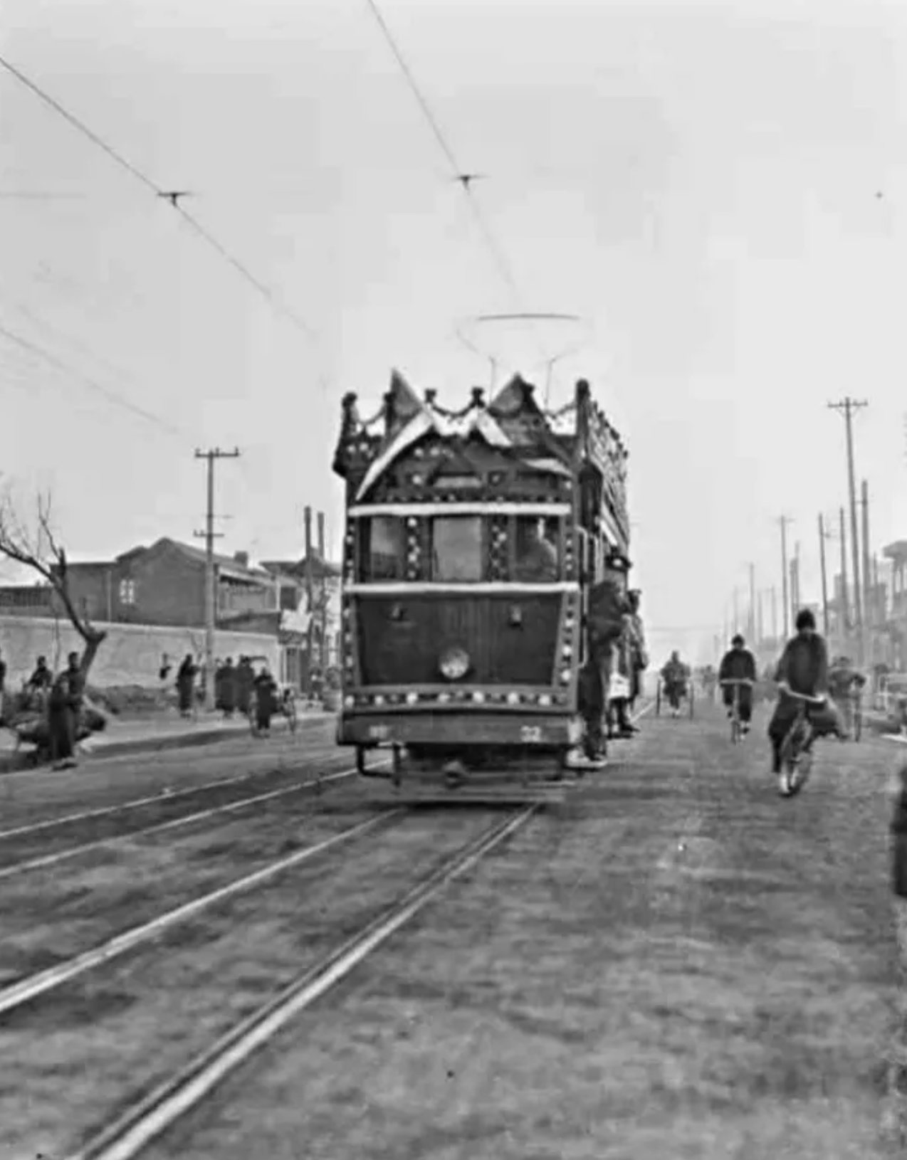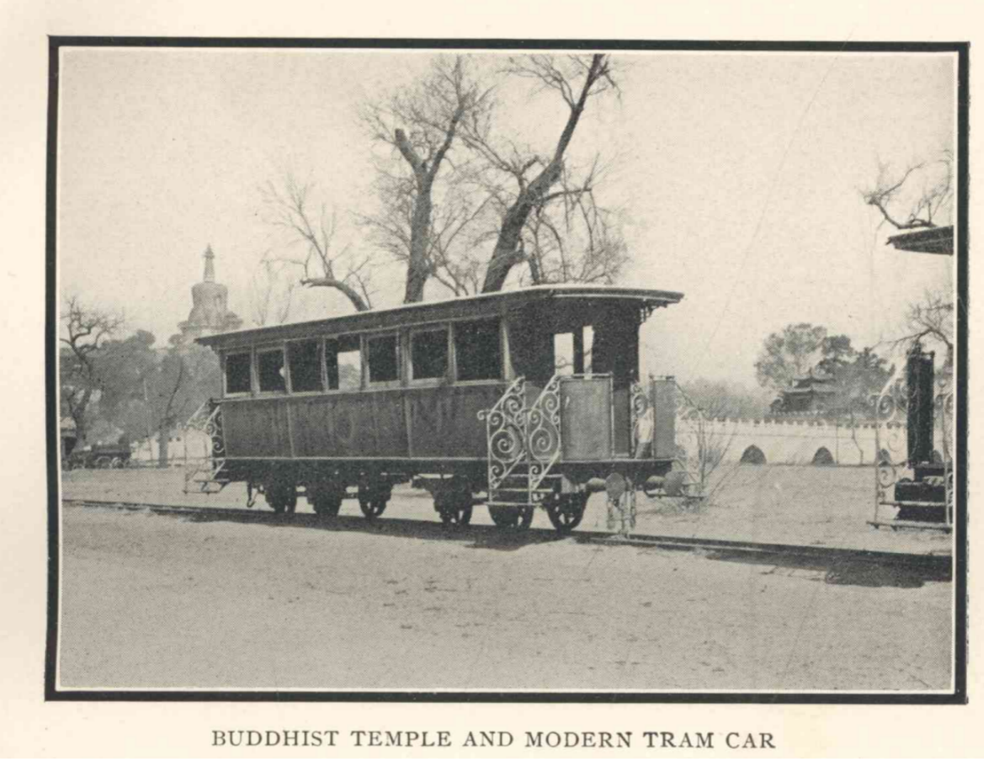 1924年,北京第一条有轨电车线路开通。电车铃铛“铛铛”作响,北京人因而把它称为“铛铛车”(甘博摄)。《图说北京古城变迁史》插图