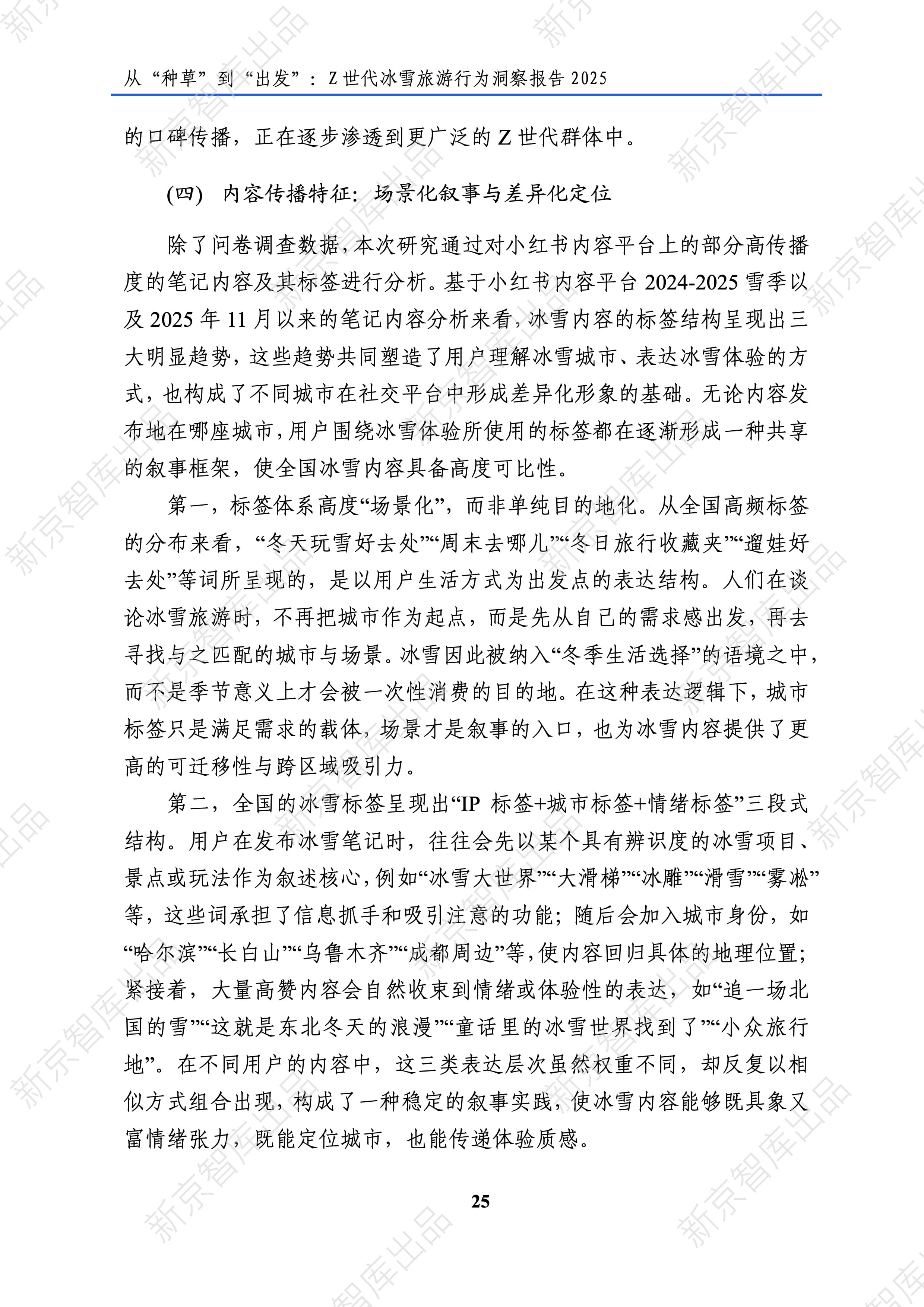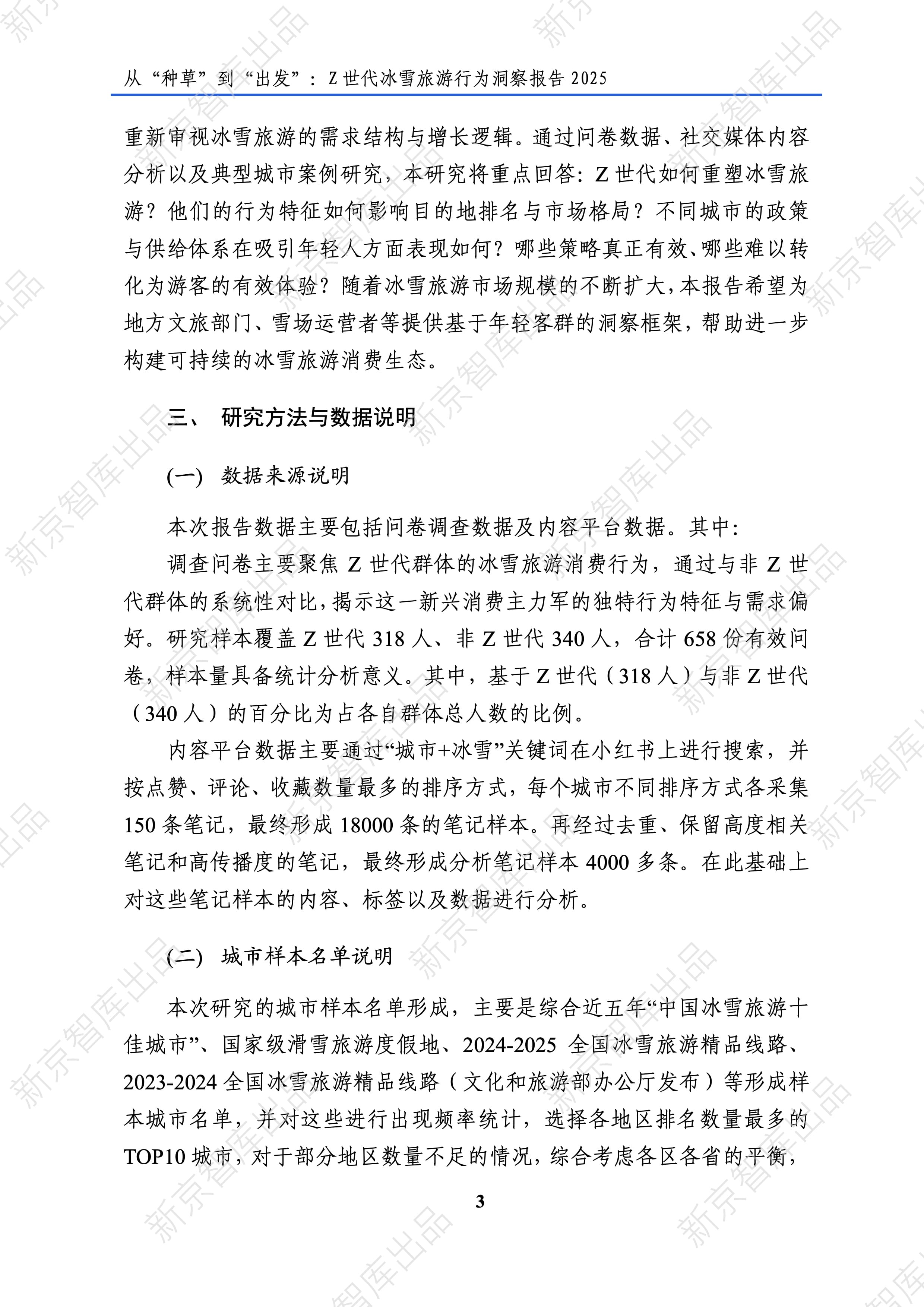 12月17日,新京智库发布《从“种草”到“出发”:Z世代冰雪旅游行为洞察报告2025》。本次报告通过658份有效问卷,以及4000多条小红书平台上高传播的笔记及其标签进行分析。报告主要发现如下。