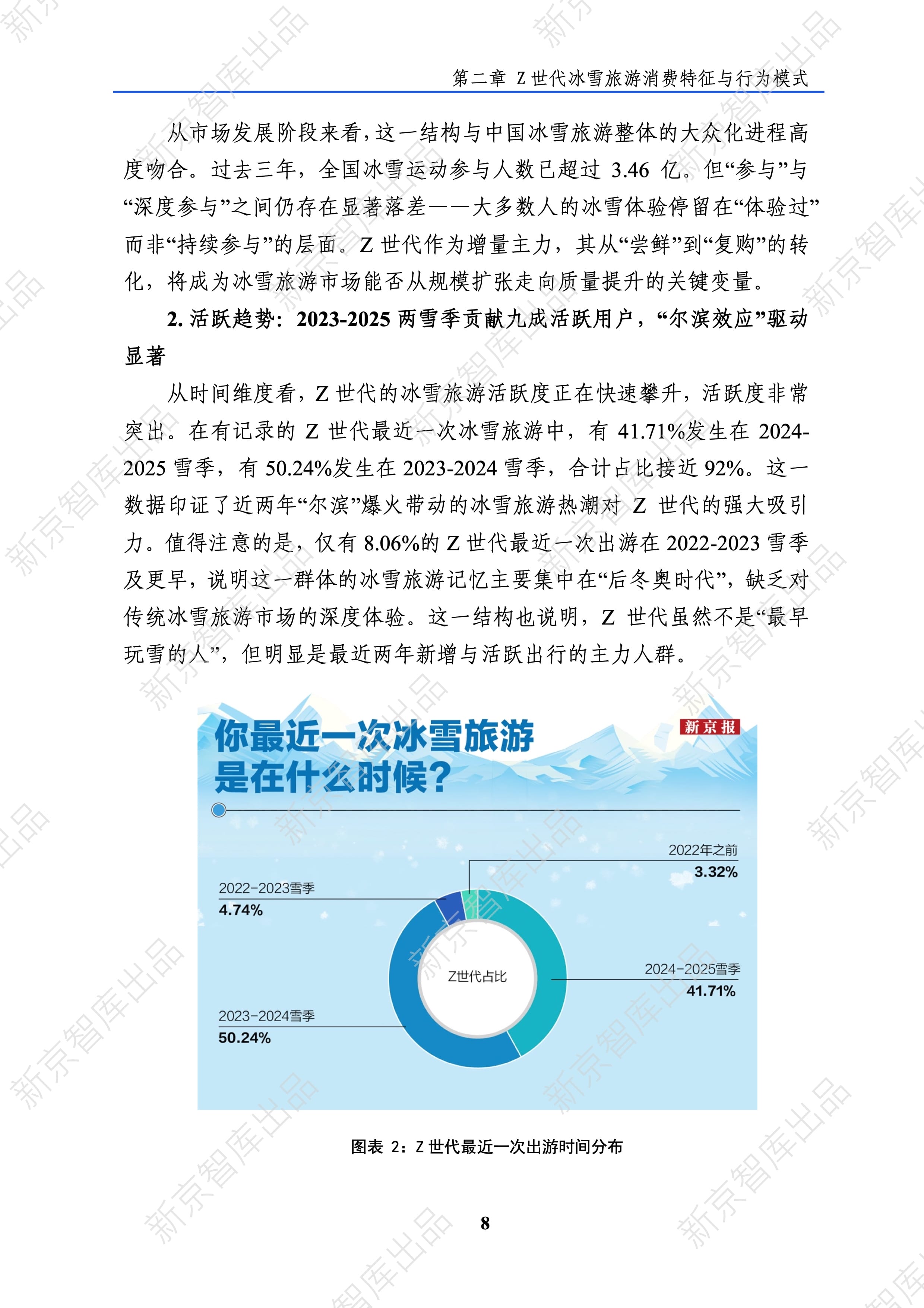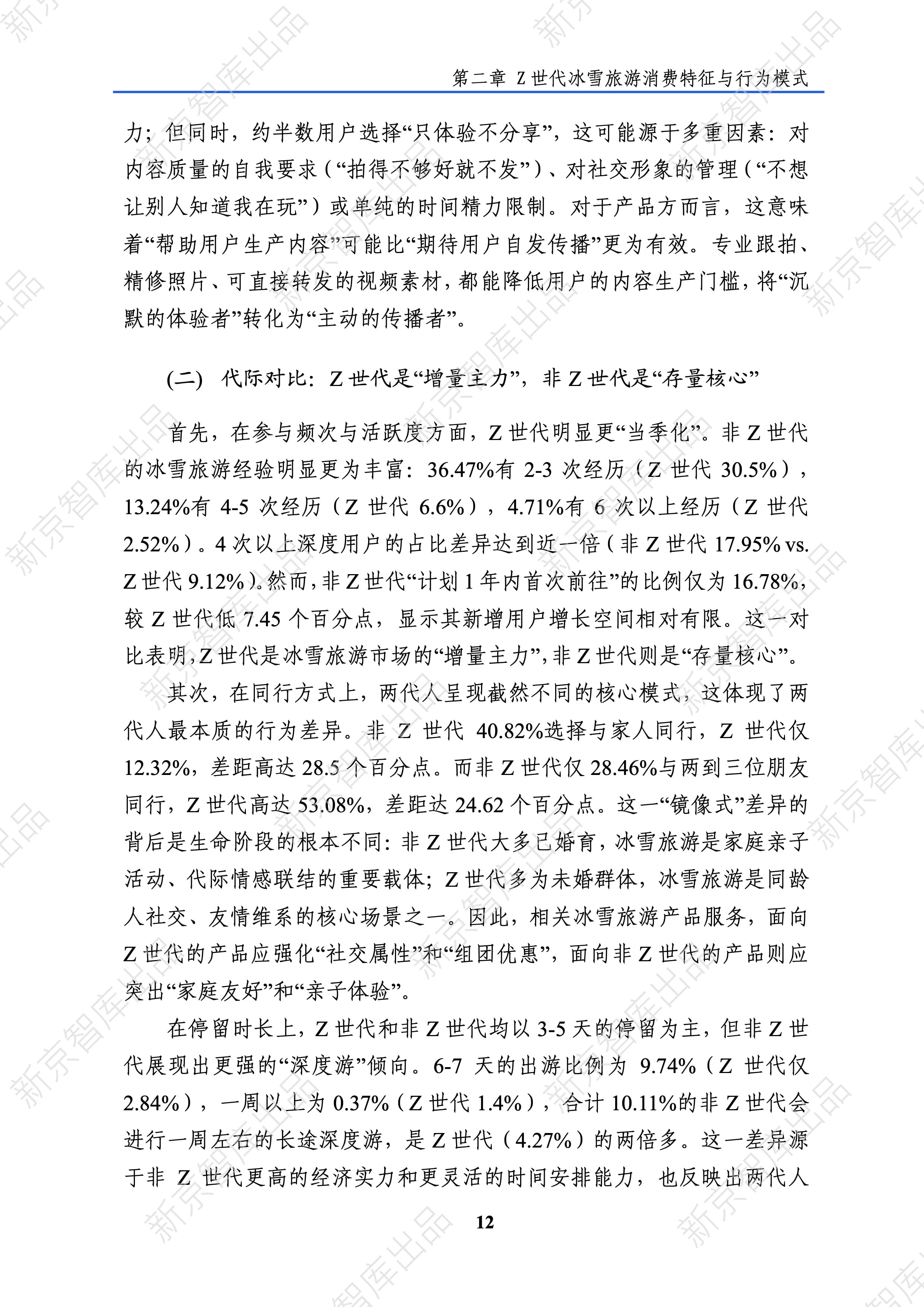Z世代是冰雪旅游的“增量主力”,非Z世代是“存量核心”:近三年内首次体验冰雪旅游的Z世代比例显著高于非Z世代,Z世代正在成为市场扩容的关键驱动力。