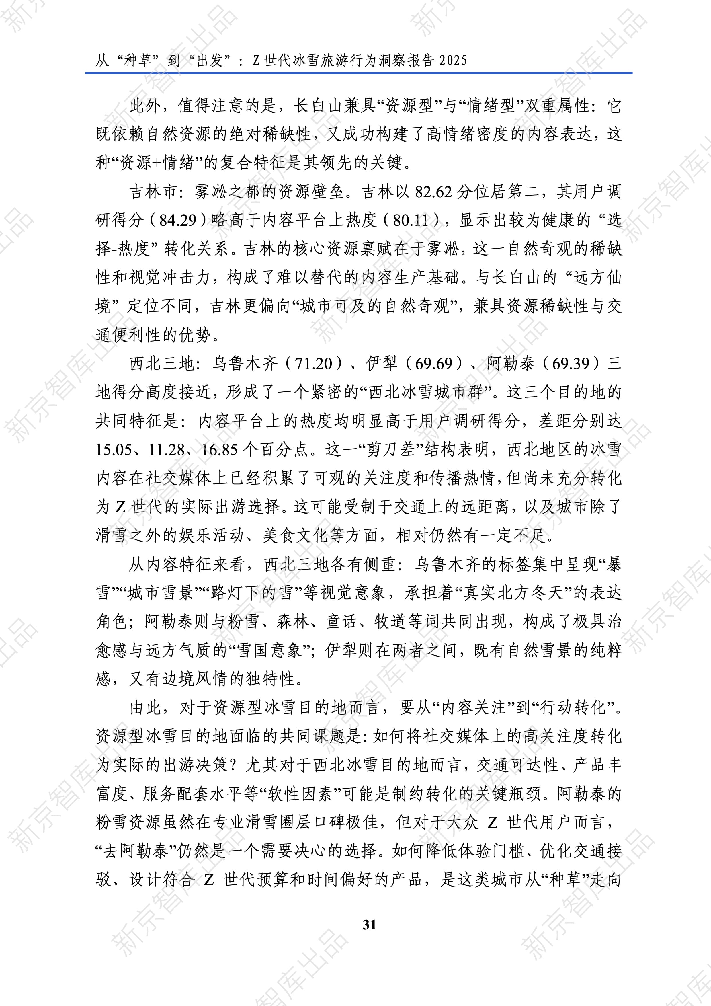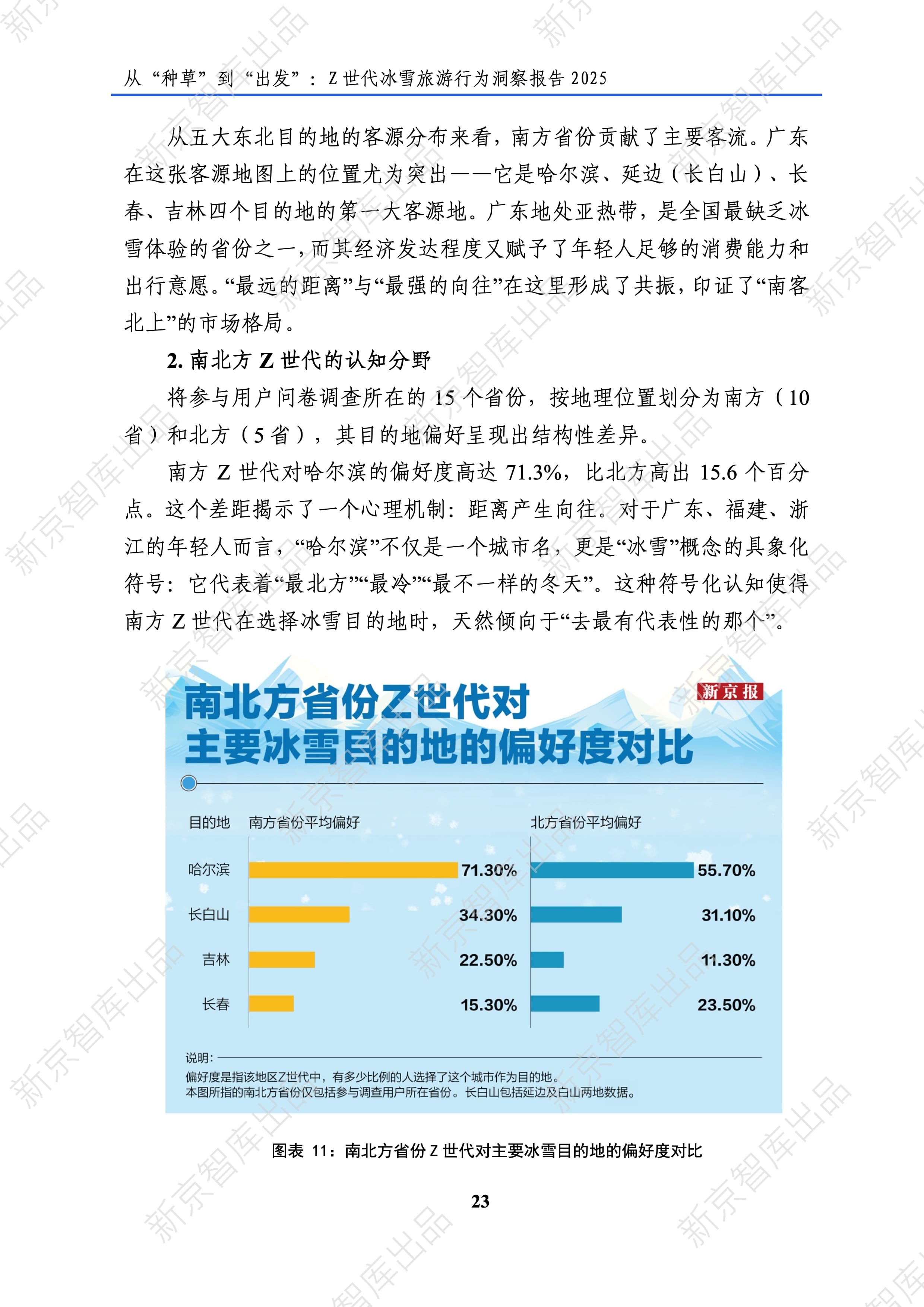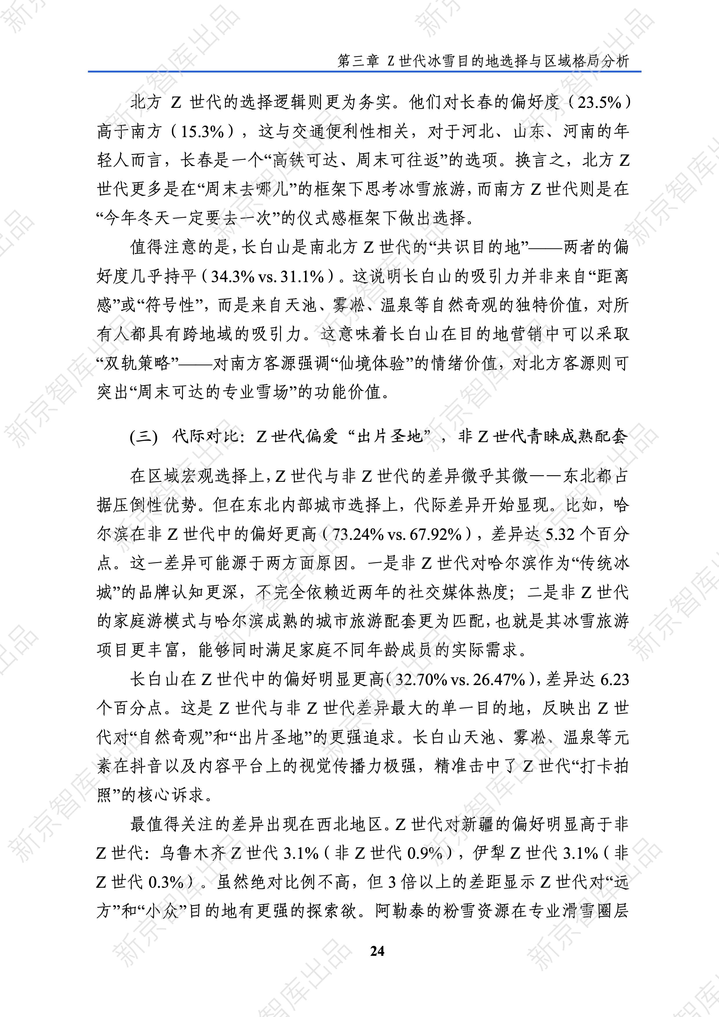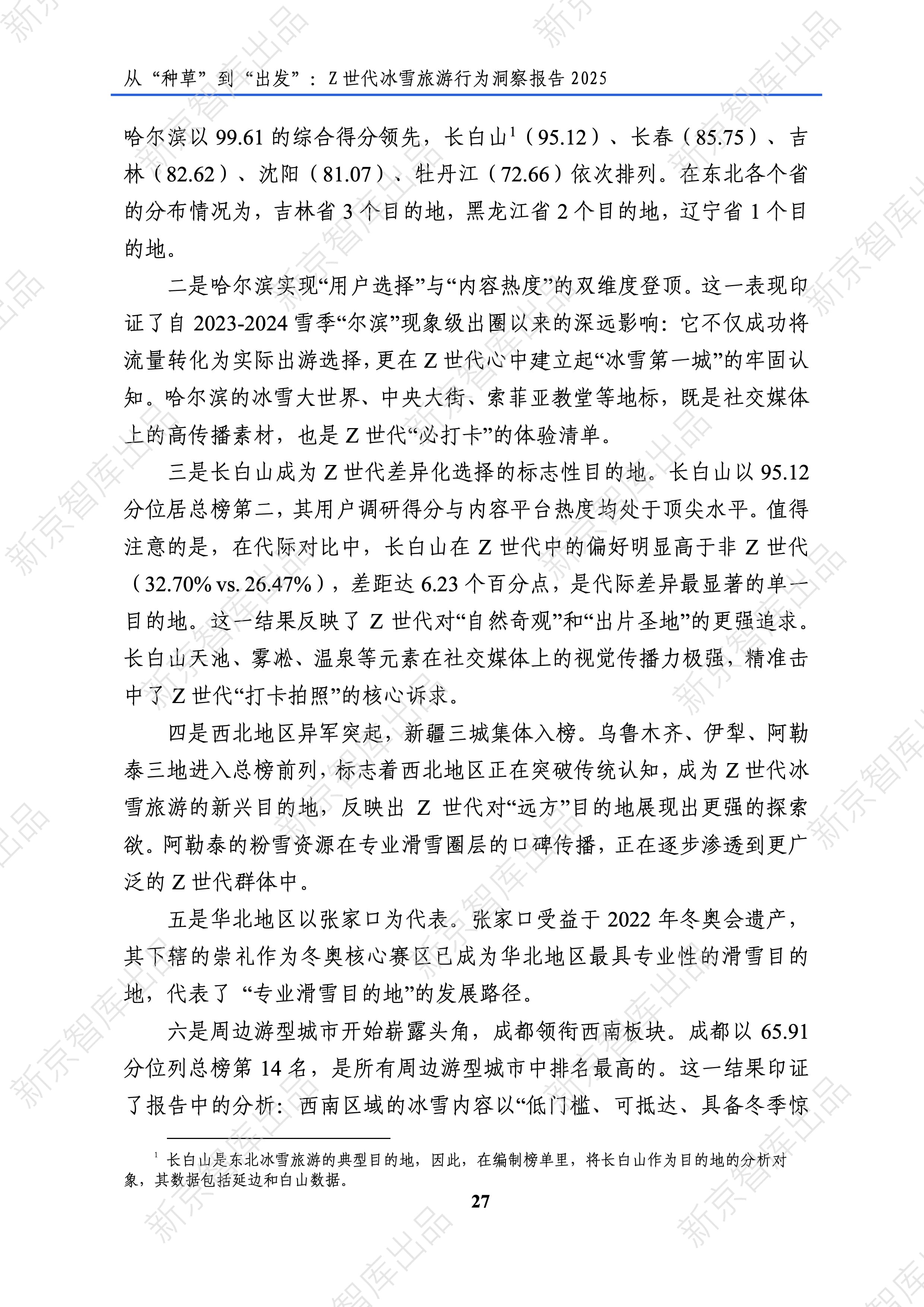 Z世代目的地偏好更加多元分散:除东北外,新疆阿勒泰等新兴目的地在Z世代中的认知度和偏好度正在快速提升。