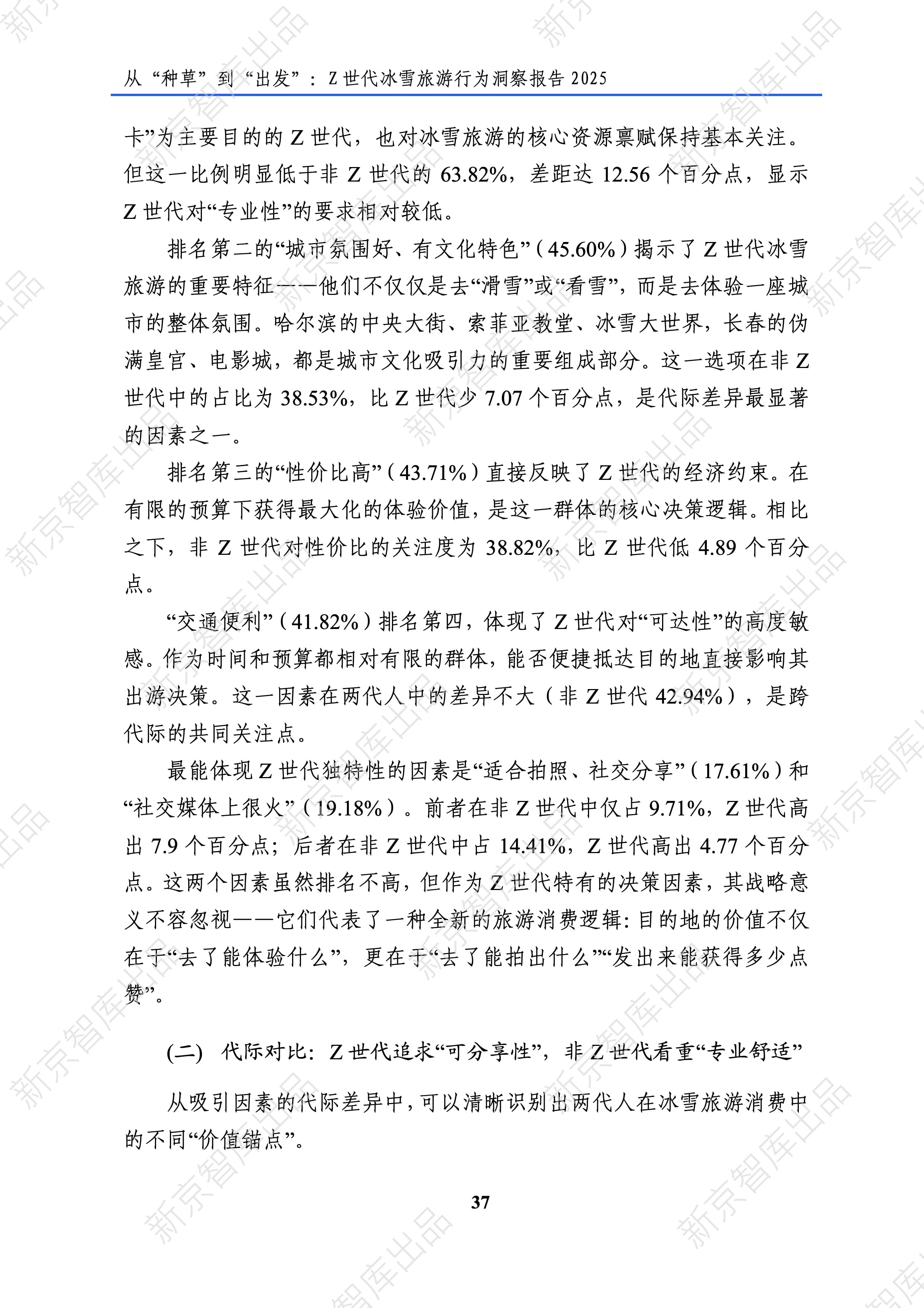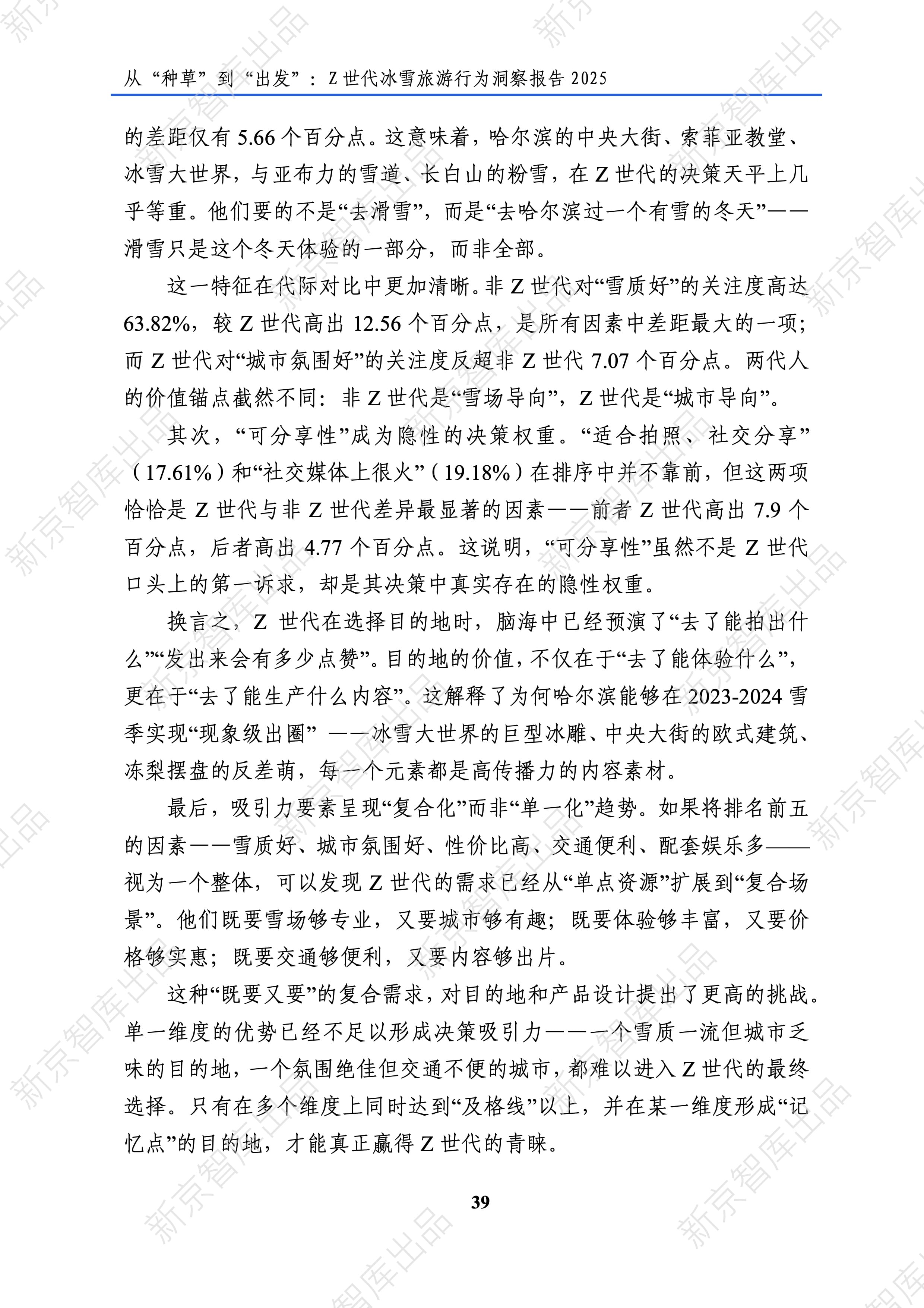 雪质、城市氛围、性价比构成Z世代决策“三角”:三者共同决定了目的地在Z世代心中的吸引力排序。