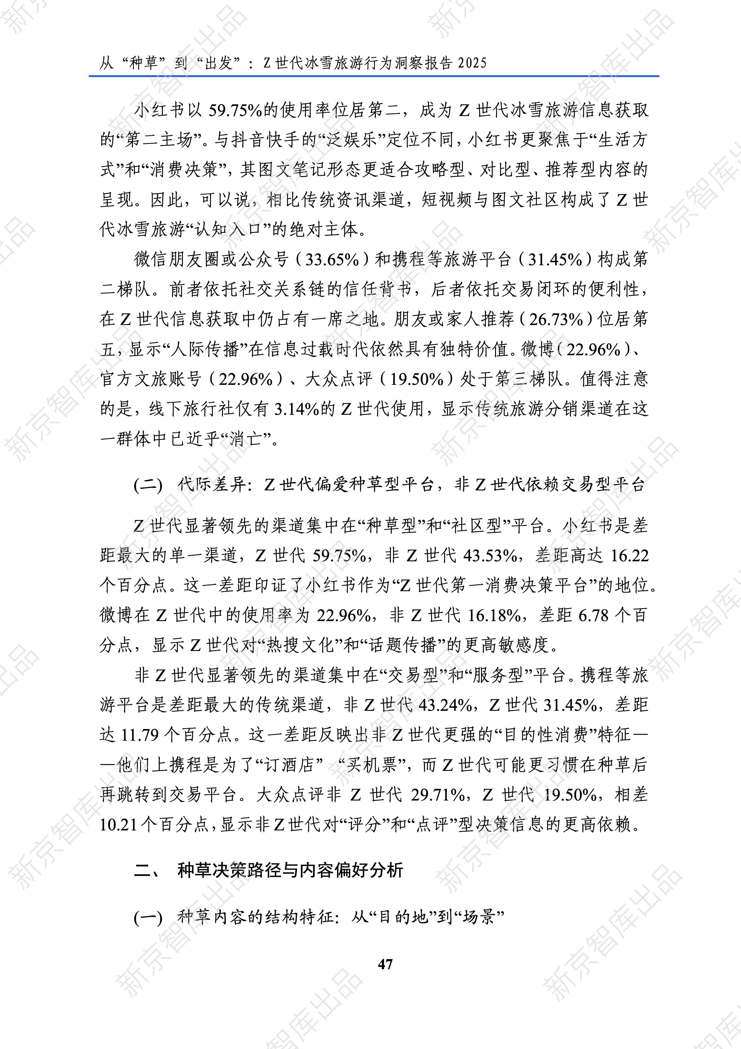 短视频+内容平台构成Z世代信息获取的“双核驱动”:抖音、小红书等平台的使用率远超传统OTA,被“种草”成为决策起点。