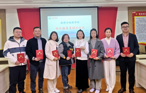 创新育人模式,强化实践能力。支部联合共建单位打造“校企双导师”育人机制,聘请8名企业党员高管、行业专家担任校内外实践导师,共同制定人才培养方案、设计实践课程;建成“海庐茶博园实践教学基地”“九江礼涞生物科技有限公司实践教学基地”“绿丰茶场实践教学基地”“永修样式雷实践教学基地”等多个实践基地,成功联合建设国家科技小院一个,组织党员教师带队开展“九江邮轮始发港打造”“乡村旅游规划实践”“生态研学调研”“非遗文化传承实践调研”“茶旅融合实践调研”“民宿创意与运营”“景区创建与提升”“点绿成金,特色科普”等实践活动10余次,覆盖学生300余人次。开办了“金牌讲解班”和“乡村振兴与文旅策划”两个旅游微专业,其中“金牌讲解班”得到九江市委书记刘文华的肯定。九江学院酒店管理专业入选学校首批产教融合品牌专业,新增校级课程思政示范课2门,新增校级校企合作课程1门。党员教师雷彬等指导学生比赛获省级银奖,党员教师严宽荣、郭清、崔明月、李翔宇等指导的商科比赛获多项国家级奖项。支部樊春梅、乔秋敏、李翔宇三位党员老师入选江西导游资格考试面试官。支部党员魏伟新、崔明月被聘为2025年江西省职业院校技能大赛高职组导游服务大赛裁判。党员指导学生在全国大学生红色旅游创意策划大赛中分别获得一等奖和二等奖。