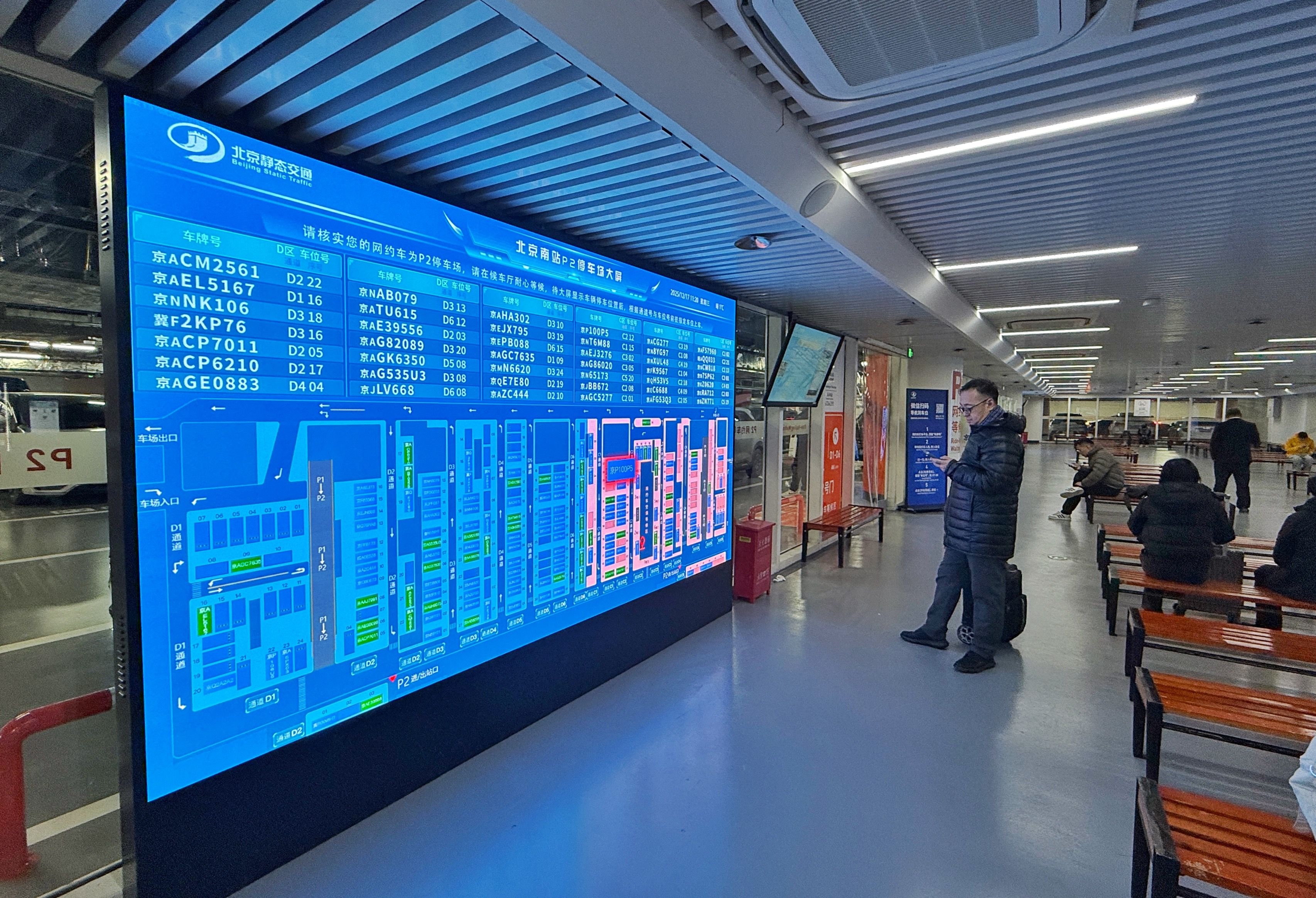 记者了解到,北京南站停车场的智慧化升级还将继续进行。作为整体改造计划的第二部分,P1停车场(原西地下B1层)的全面升级工程已于P2投用同日(12月4日)紧锣密鼓地展开,预计将于2026年春运前夕正式投入使用。P1停车场将严格遵循并在P2实践基础上优化智慧化建设标准,建成后P1与P2将协同构成一个功能互补、标准统一的智慧停车网络,整体提升枢纽的交通接驳能力与综合运行效率,推动站区整体服务品质的持续提升。