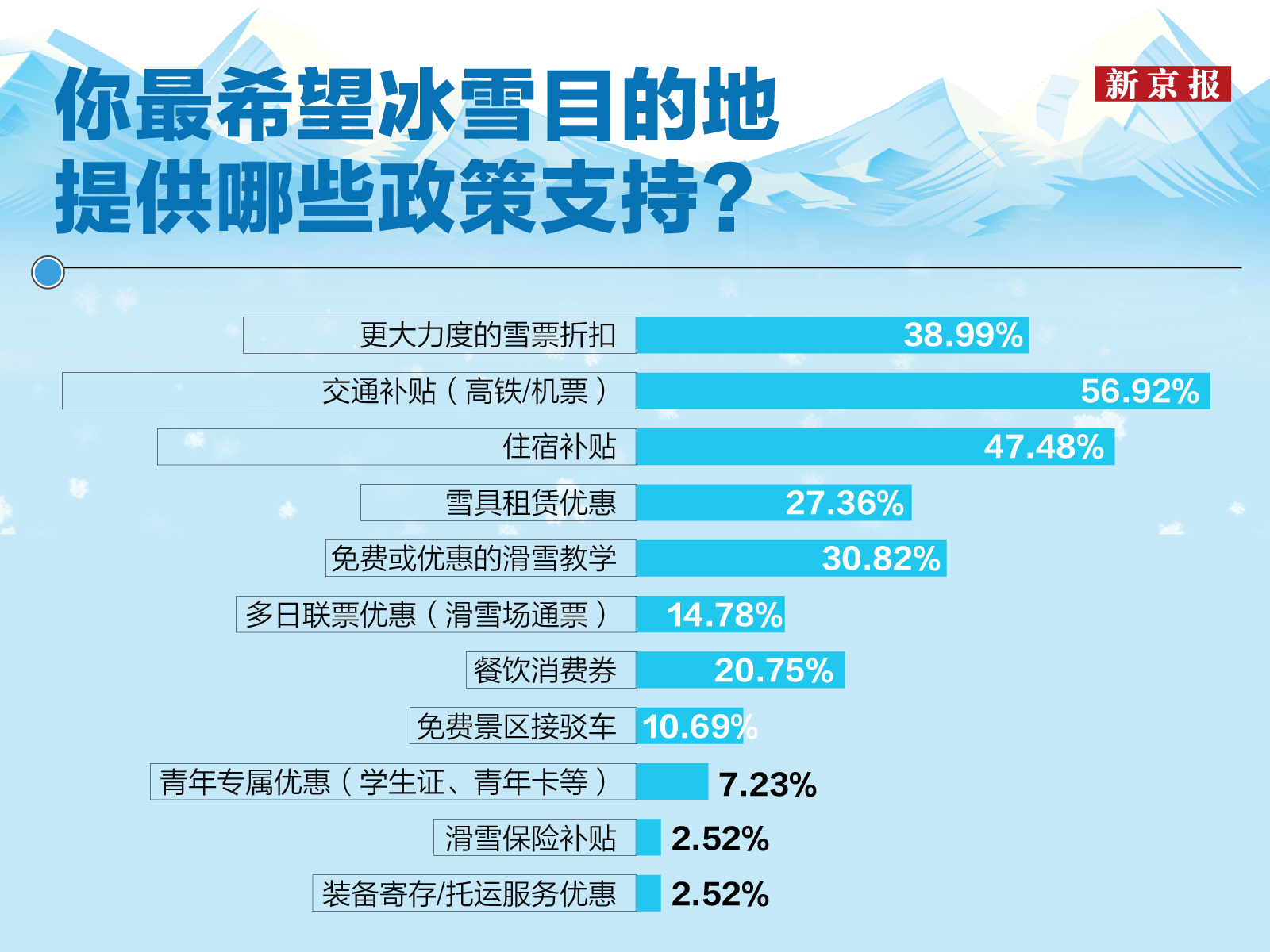 Z世代希望冰雪目的地提供政策支持类型的占比分布。