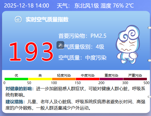 本次污染过程何时结束?据北京市生态环境监测中心预测:17日夜间至19日,受高压后部到低压影响,京津冀区域处于大范围偏南风场,湿度加大,早晨有轻雾,近地面出现明显逆温,垂直和水平方向均不利于大气污染物扩散,叠加区域南部污染传输作用,污染持续积累,预计我市将发生一次明显PM2.5污染过程,空气质量维持4级中度污染。20日,高压系统影响北京,扩散条件迅速改善,预计本次污染过程结束。也就是说,本周六,本次污染过程结束。