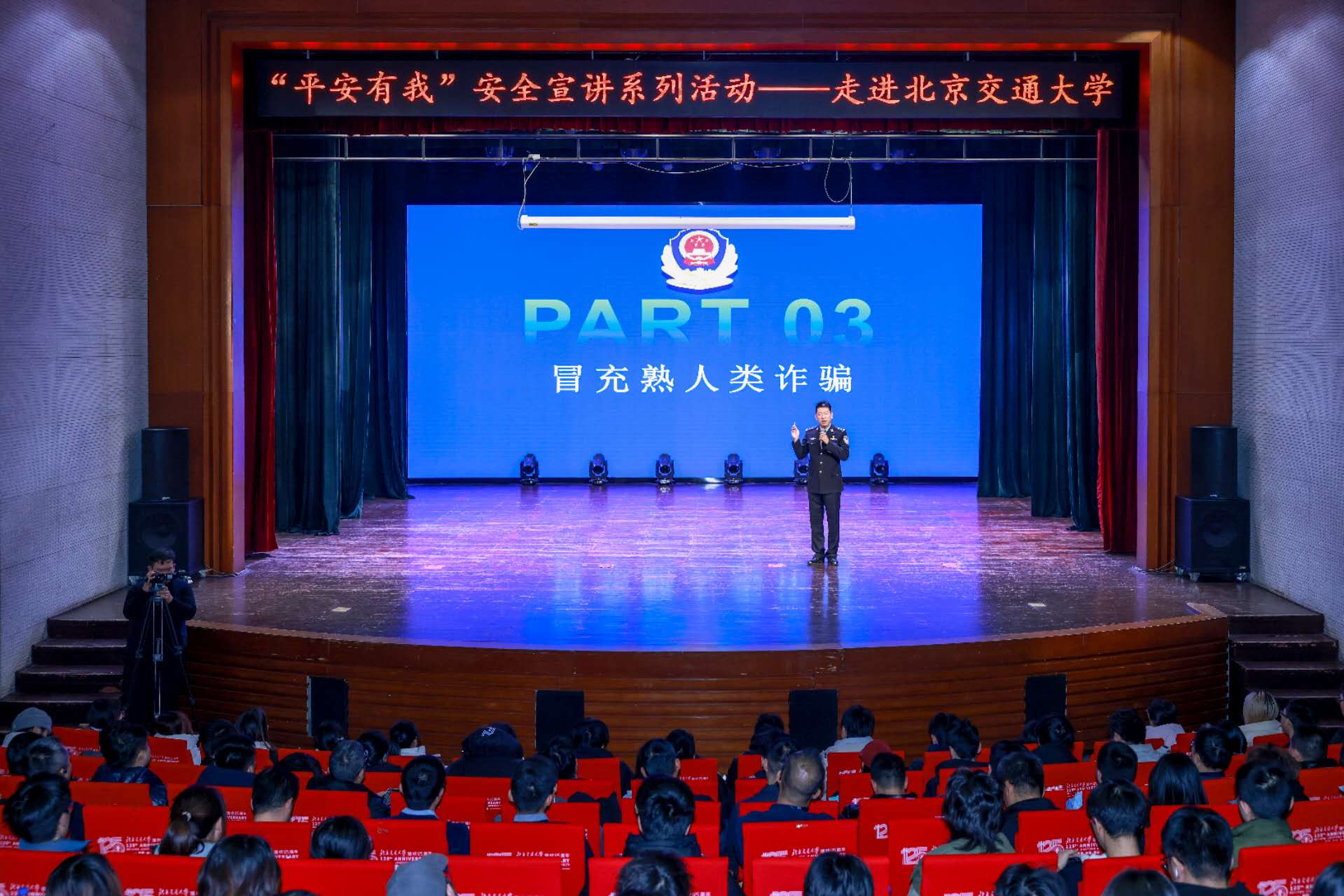 新京报讯(记者张静姝)12月18日下午,一场守护青春梦想的“平安有我”安全宣讲活动在北京交通大学内火热进行。北京市公安局联合北京市消防救援总队、北京广播电视台等单位,以“定制化内容+沉浸式宣讲+互动式问答”的创新形式,为北京师范大学、中央财经大学、中央民族大学等15所高校的130余名师生代表,送上了一堂干货满满的安全必修课。