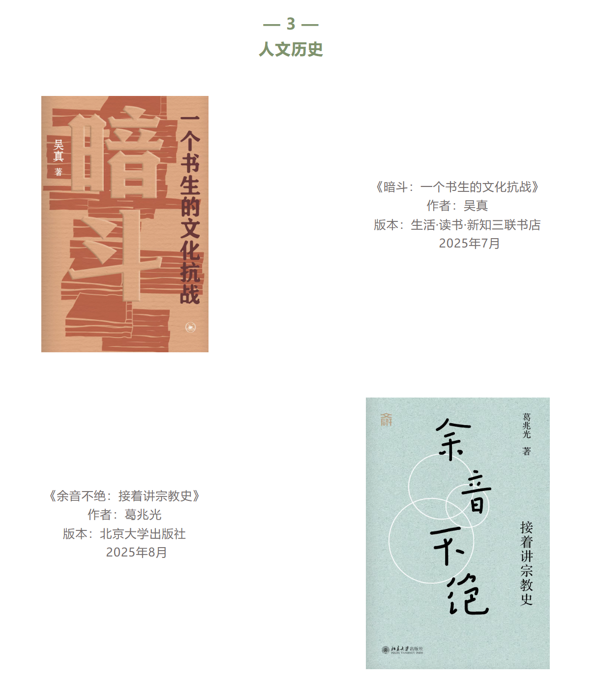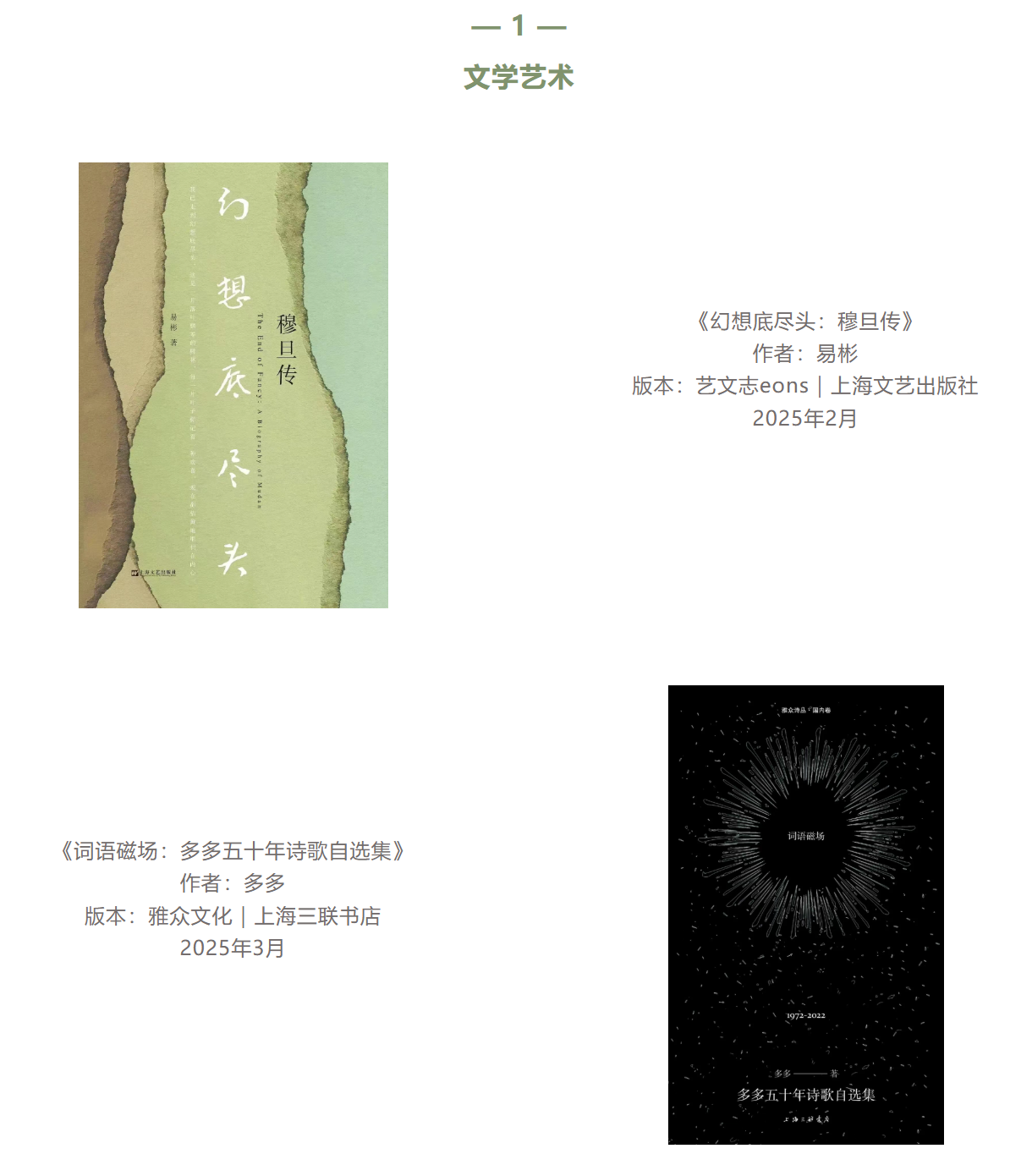 今年,我们从2025年1月到2025年12月出版的新书中(再版、重印和重译,多人合集、个人多体裁合集和合译,分期出版的丛书、工具书、教辅等图书不纳入评选范围),经过编辑部层层筛选,选出文学艺术、人文社科、新知教育生活三类共计85本阅读推荐书目。
