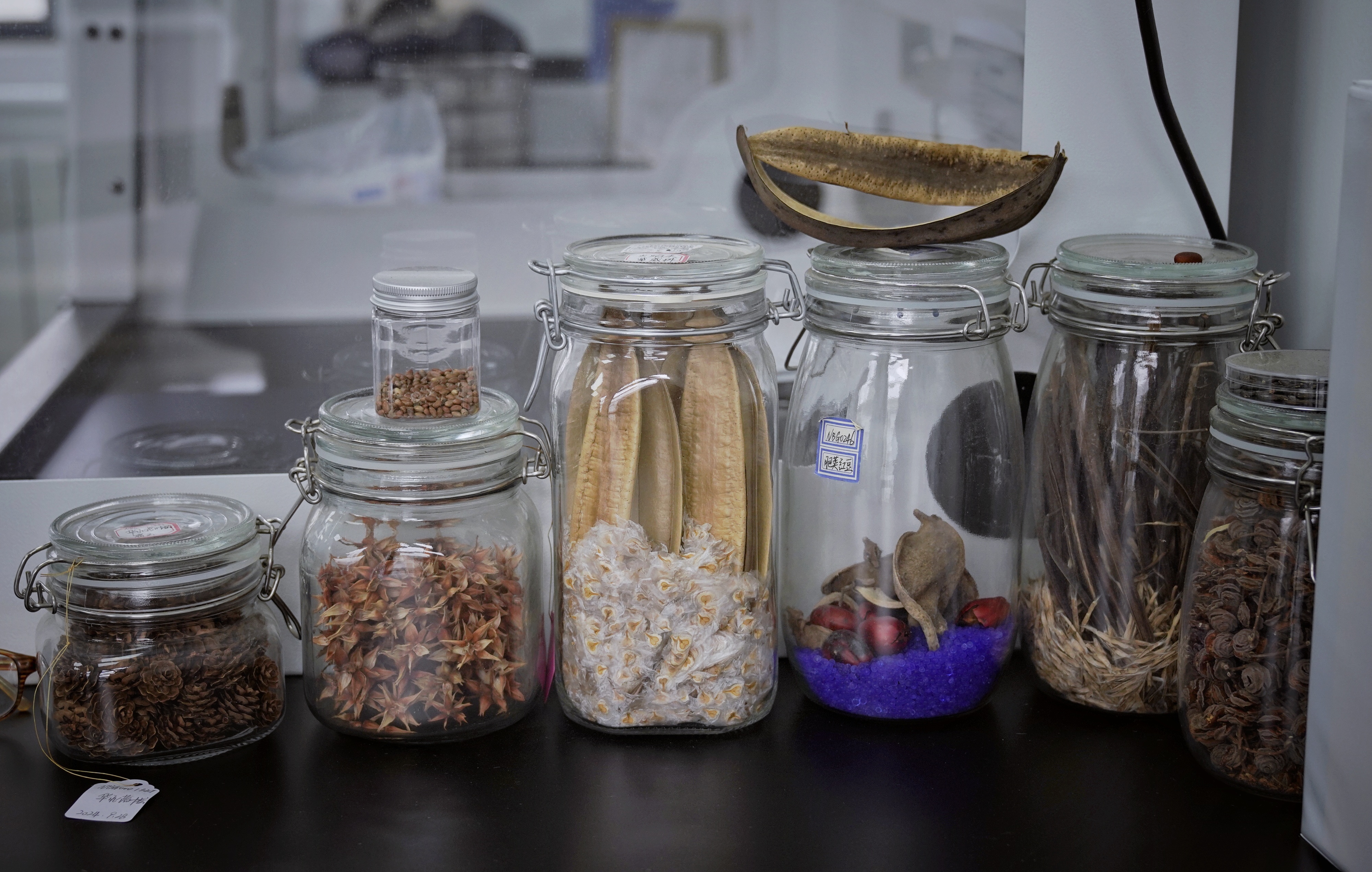 密封罐中装着各种种子。新京报记者 薛珺 摄