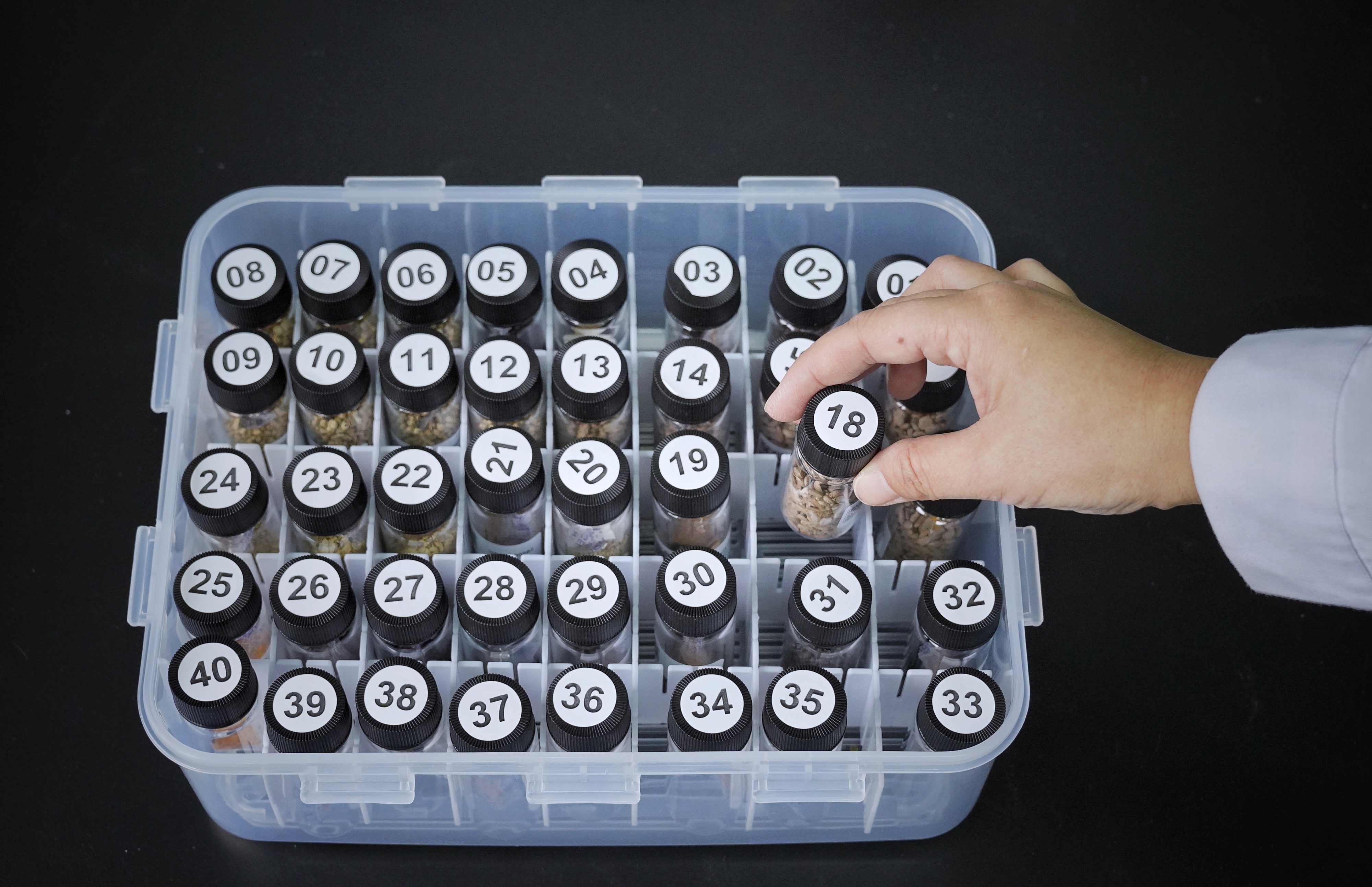 干燥后的种子将被送往包装间。在这里,它们会做X光检查,确保其种子饱满情况。每份种子会被包装进大大小小的密封瓶罐中,并贴上二维码标签纸。密封罐内,还会放一个小硅胶袋用于检测湿度。一旦容器漏气或者潮湿,硅胶粒会变色,以便工作人员及时发现并更换瓶子或密封圈。