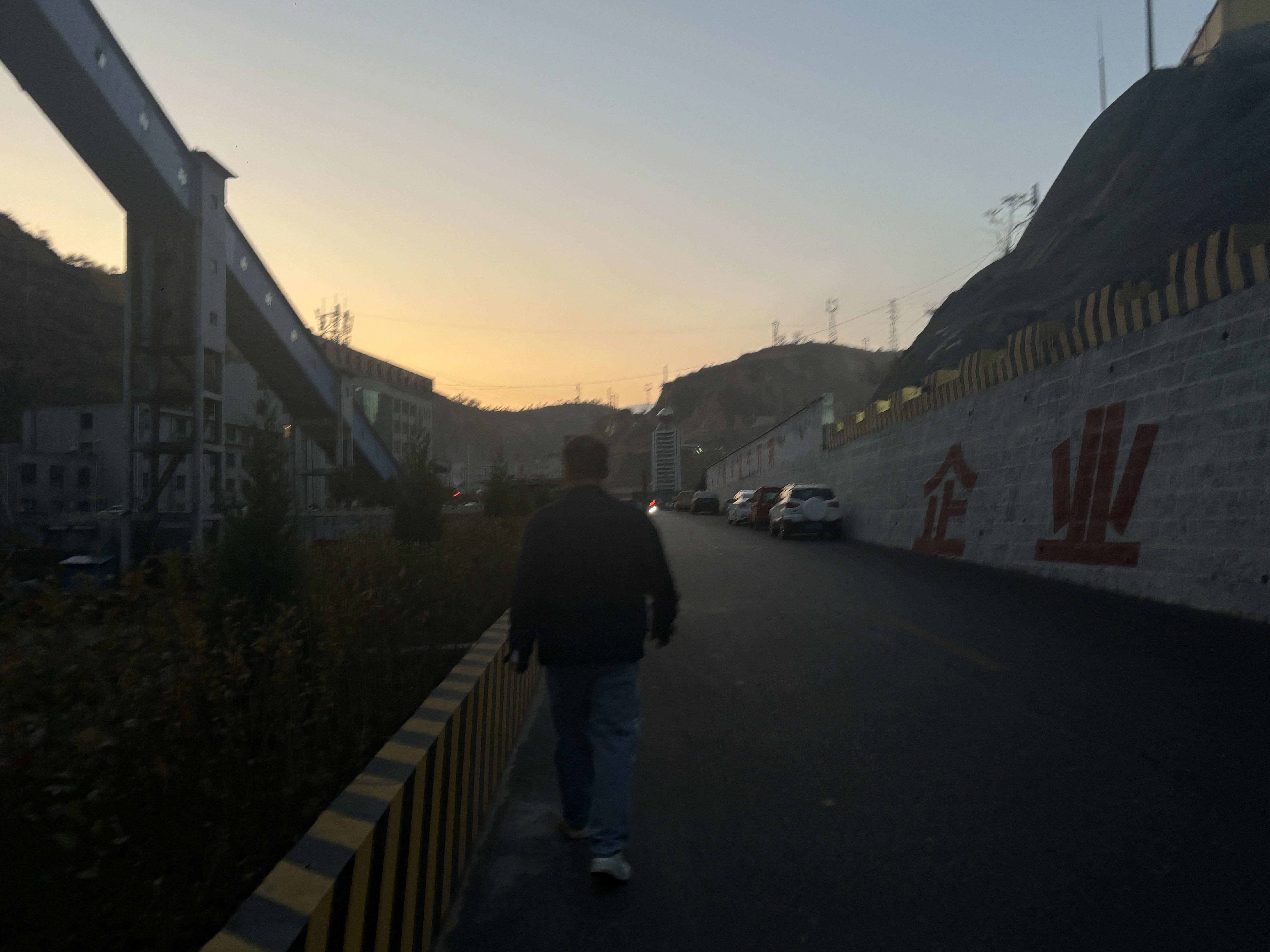 11月初,高跃忠轮到了夜班,从晚上10点持续到第二天早上6点,外面天还没亮,矿区却始终醒着,硕大的运煤带横跨头顶,水塔和烟囱安静地列在空地,目送那些摩托车载着穿反光背心的煤矿工人,轰鸣着进出厂区。