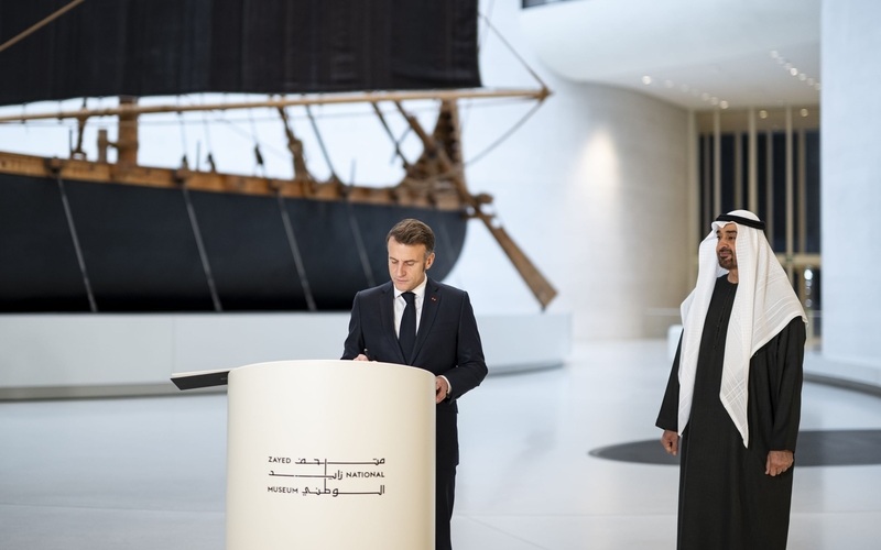 当地时间2025年12月21日,阿联酋阿布扎比,法国总统马克龙与阿联酋总统举行会晤。图/IC photo
