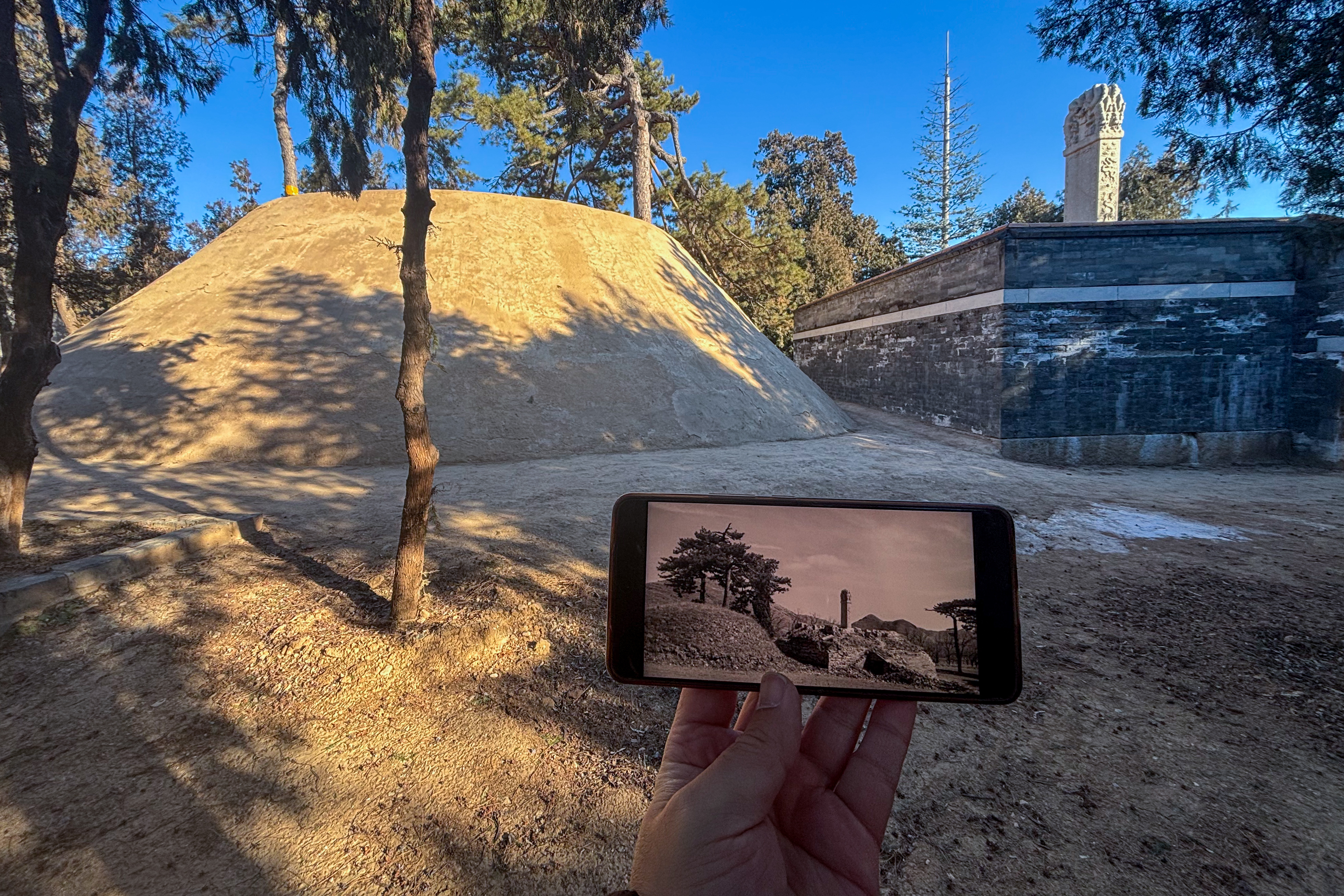 思陵老照片和现在场景对比。新京报记者 王子诚 摄