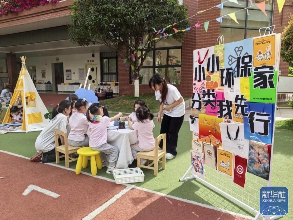 ▲老师带领幼儿共读环保绘本、创作旧物手工。图/新华社