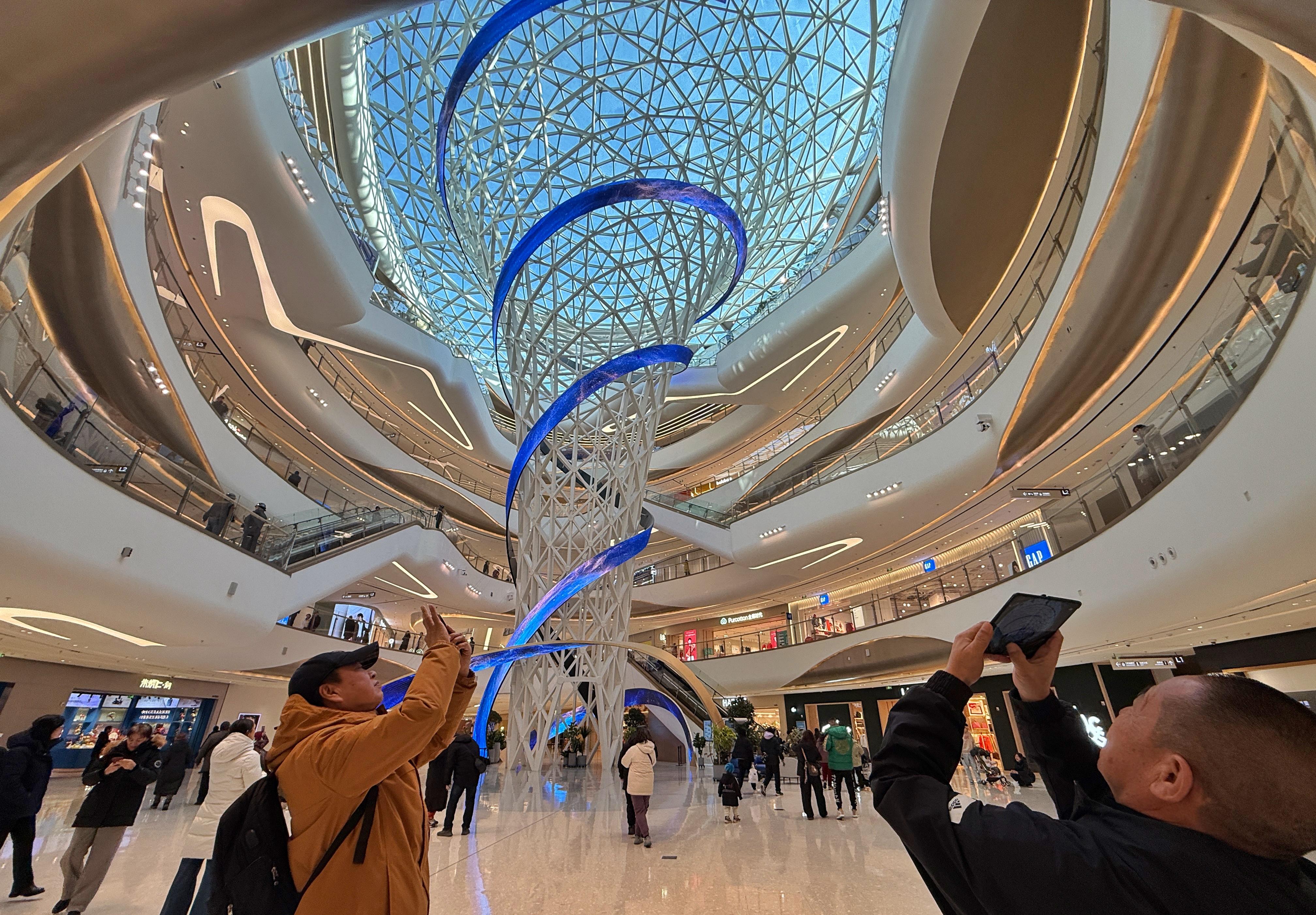 市民在湾里王府井奥莱商场内拍照打卡。新京报记者 王贵彬 摄