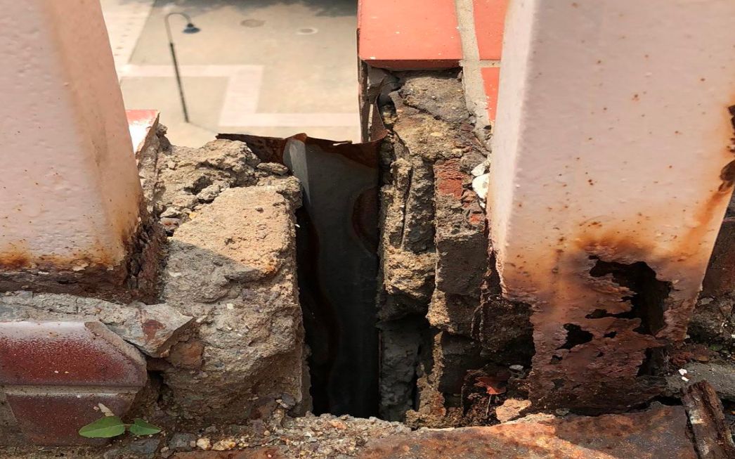 2018年7月,事发教学楼锈蚀的栏杆。受访者供图