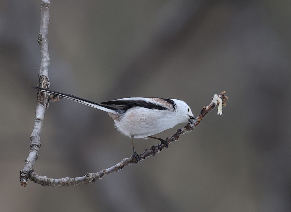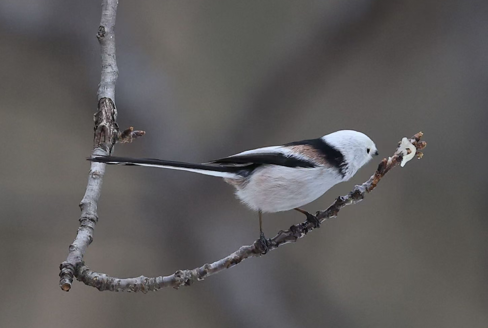 12月16日,玉渊潭公园樱花区玉树临风,北长尾山雀被抹在树枝上的蜂蜜所吸引。