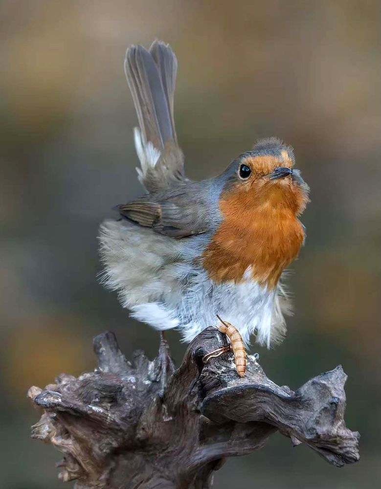 12月2日,在北京另一公园内,诱拍者用铁丝穿上虫子,引诱来一只知更鸟。