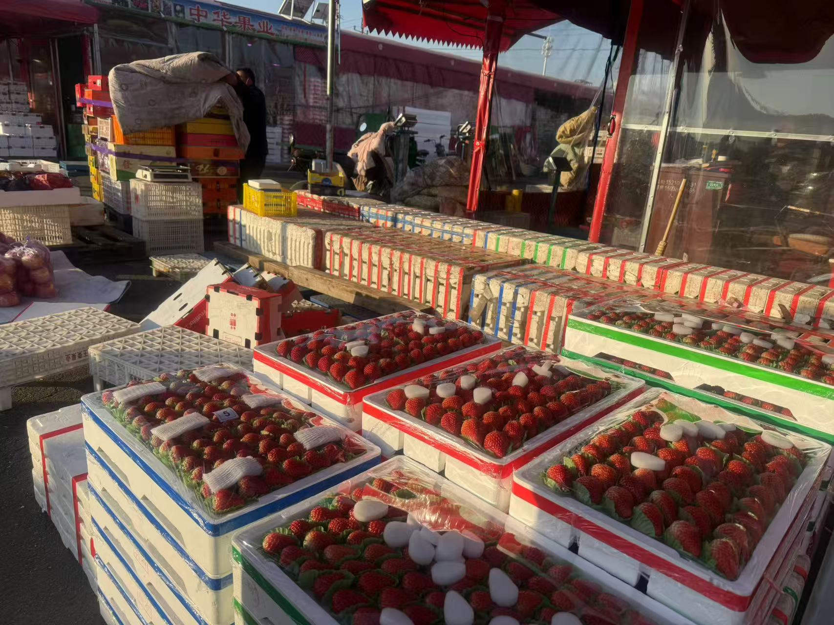 元旦前夕,草莓迎来销售旺季,日均上市超100吨(3万余箱)。据商户介绍,目前主产区包括辽宁丹东、山东莱阳、安徽长丰及河南开封。其中丹东“99红颜”批发价每斤30元-50元,莱阳的奶油草莓、长丰的红颜草莓批发价每斤约28元,产地开封的草莓品种“天仙醉”“宁玉”批发价则在11元-12元区间。张月琳介绍,玉露香梨、秋月梨、蓝莓、柚子、沃柑等国产水果也进入供应高峰期,价格平稳、品质优良,满足市民多样化节日需求。
