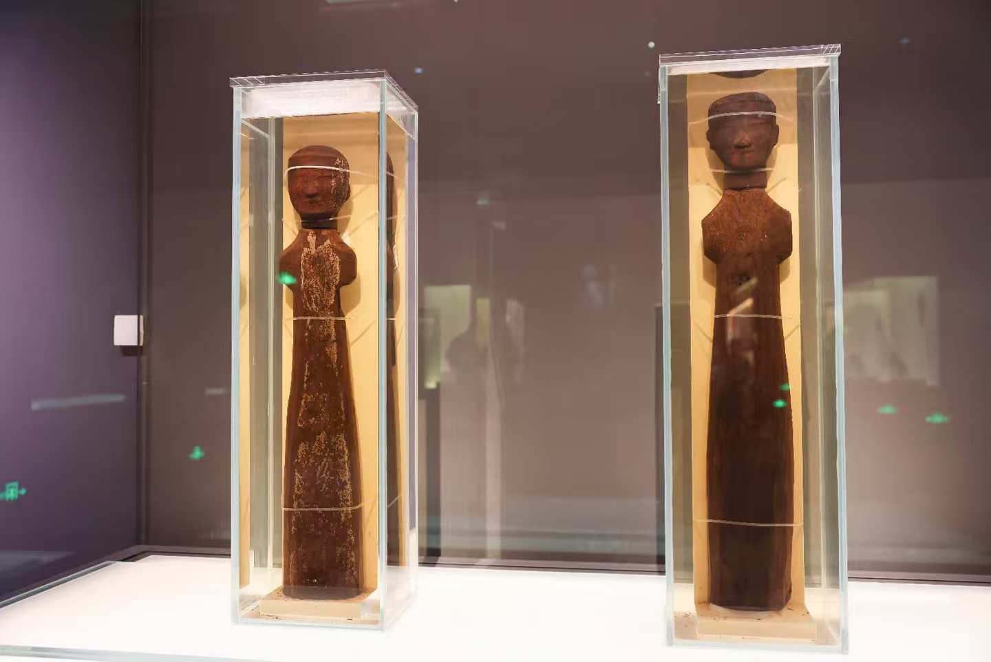 武王墩一号墓出土的木俑。新京报记者 浦峰 摄