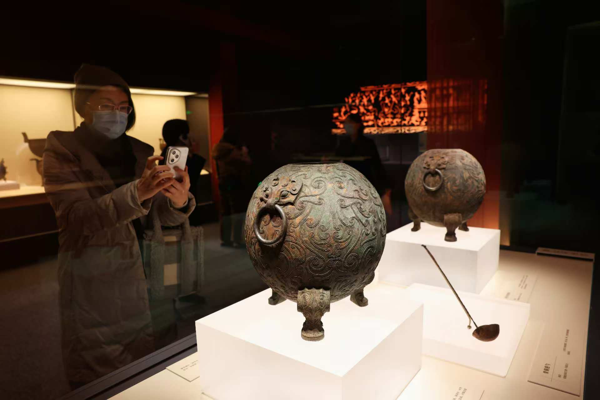 球形青铜瓮。这一器型的铜器以往鲜有发现,可能是盛放佳酿和汤羹的容器。新京报记者 浦峰 摄