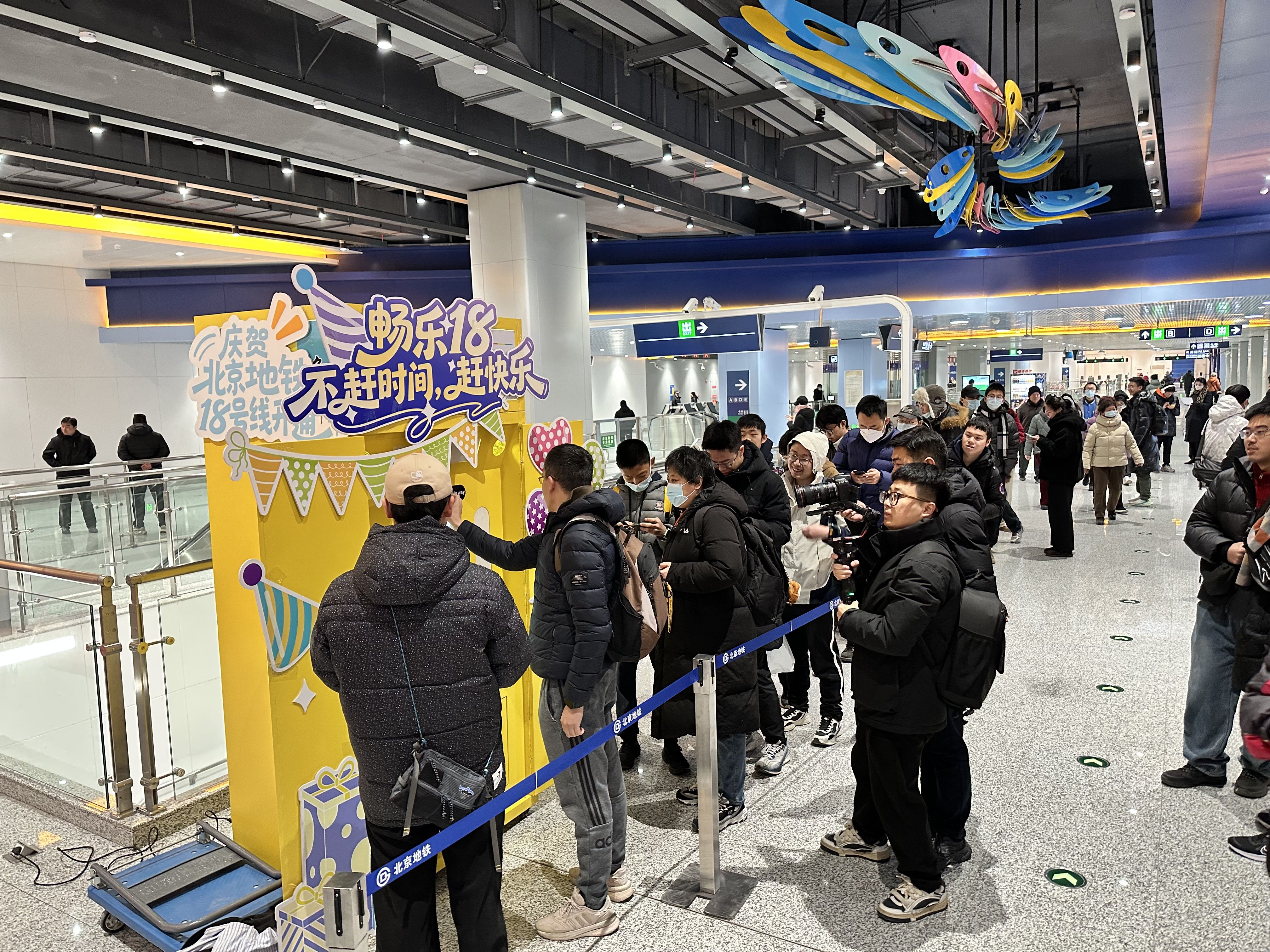 龙泽西站,乘客参与开通首日的打卡活动。新京报记者 王贵彬 摄