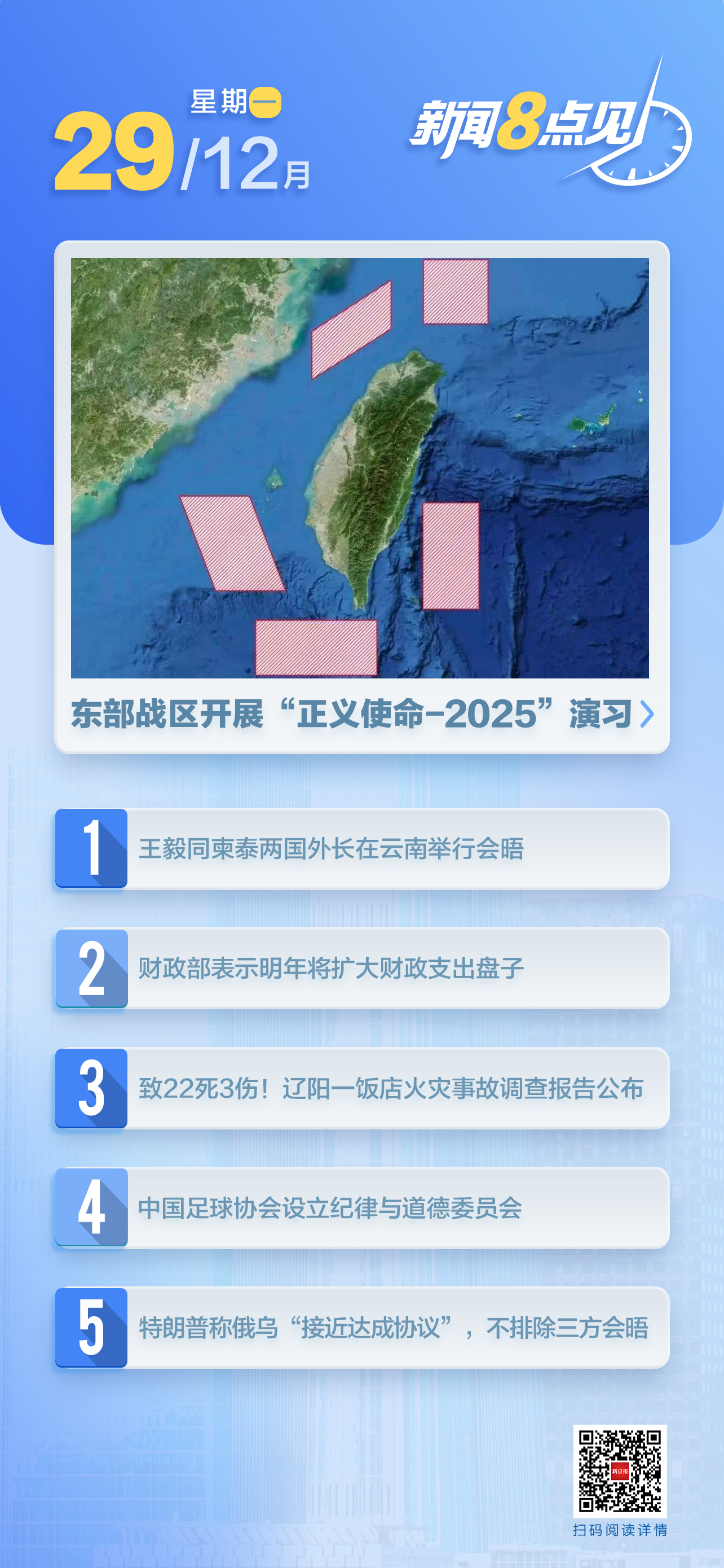 东部战区新闻发言人施毅陆军大校表示,12月29日开始,中国人民解放军东部战区组织陆军、海军、空军、火箭军等兵力,位台湾海峡、台岛北部、台岛西南、台岛东南、台岛以东,组织“正义使命-2025”演习,重点演练海空战备警巡、夺取综合制权、要港要域封控、外线立体慑阻等科目,舰机多向抵近台岛,诸军兵种联合突击,旨在检验战区部队联合作战实战能力。这是对“台独”分裂势力和外部干涉势力的严重警告,是捍卫国家主权、维护国家统一的正当必要行动。(东部战区)阅读全文>>>
