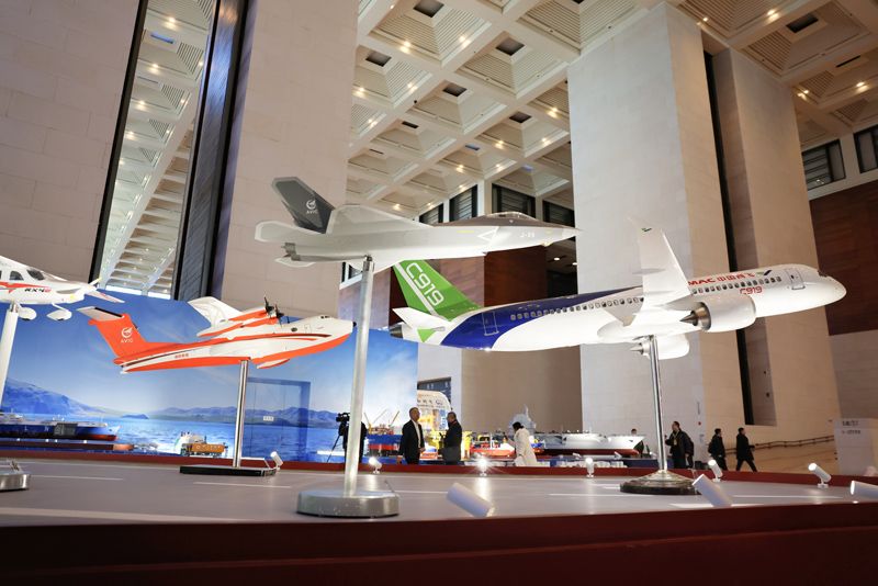 歼35、C919等航空领域成就展示。