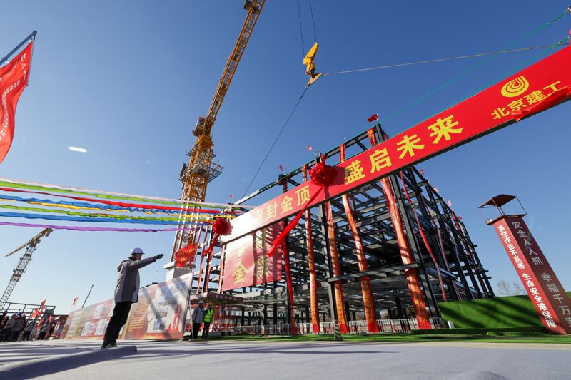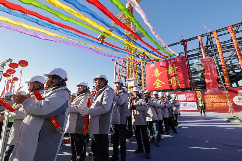 12月29日,首都医科大学新校区(校本部)项目封顶仪式现场。首都医科大学新校区(校本部)项目,总建筑面积67.24万平方米,其中北京建工所负责的南校区建筑面积29.86万平方米。
