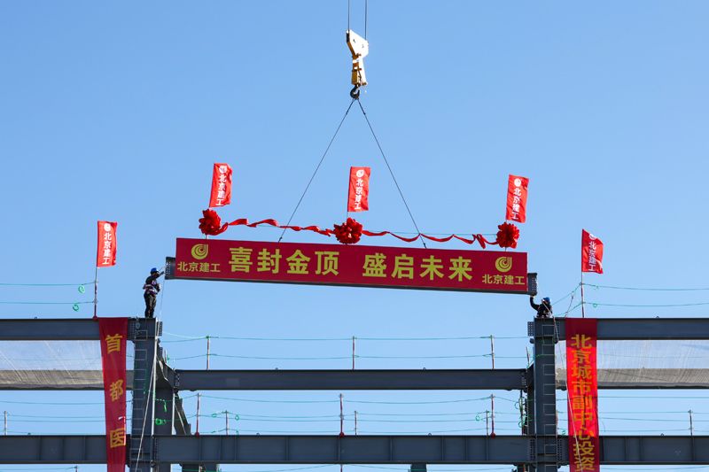 12月29日,随着最后一根钢梁被吊起,首都医科大学新校区(校本部)项目首栋钢结构顺利封顶。