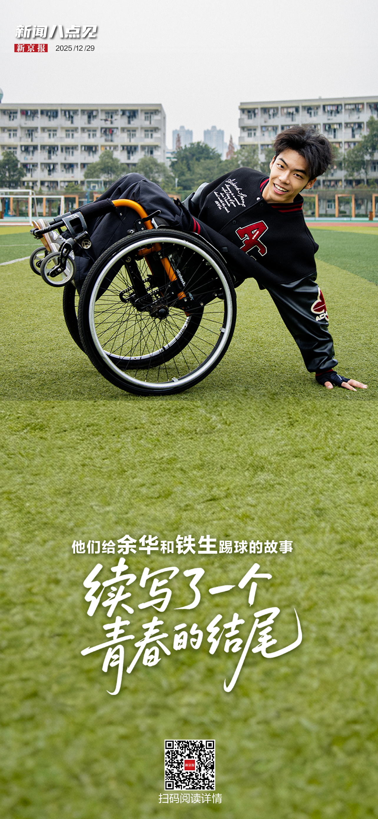 这是一次特殊的“足球赛”,守门员马尚在是一位从小与轮椅相伴的残疾人。因先天性脊柱狭窄,他下肢瘫痪,无法行走。就像30年前余华、马原拉着史铁生当足球守门员那样,这次,朋友带着马尚在复刻了那场比赛,并圆了一个更青春热血的结尾。