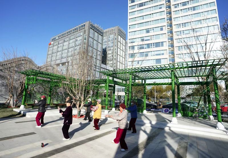 道路沿线同步建设3处口袋公园和多块小微绿地,融合灰砖、绿植等元素,织补白塔寺北缘风貌。目前已有两处口袋公园亮相,还有1处口袋公园在建,将于年底完工。