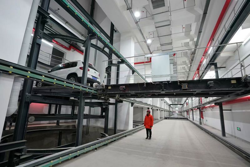 受壁街机械停车库项目建在道路地下14米处,采用“水平移动+垂直升降”的智能系统,用户仅需在入口终端输入指令,后台即可自动完成车位分配、设备调度。这是北京市首次在市政道路下同步建设机械停车库和综合管廊,被列为国家“历史文化街区保护更新”重点示范工程。