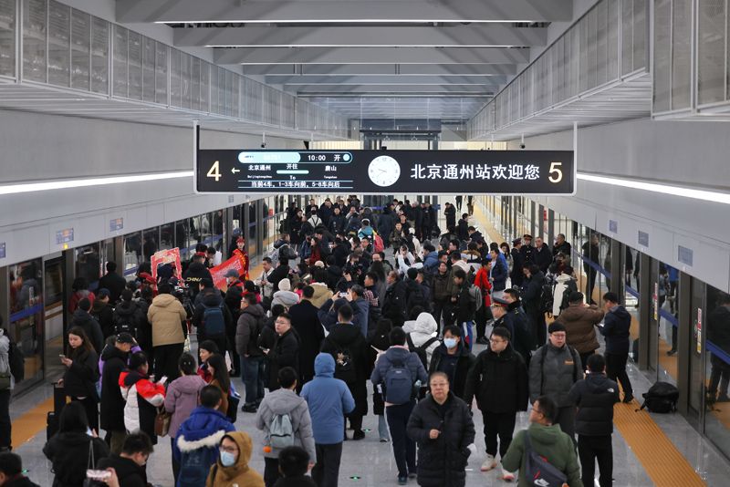 12月30日,旅客进入北京通州站。开通初期,北京通州站将开行唐山站、秦皇岛站、北辰站(天津)等方向的旅客列车,后续将根据客流量动态调整运力配置,精准匹配区域出行需求。北京通州站至唐山站、宝坻站、北辰站、秦皇岛站最快分别55分钟、26分钟、56分钟、90分钟可达,可进一步缩短京津冀城市间的时空距离。