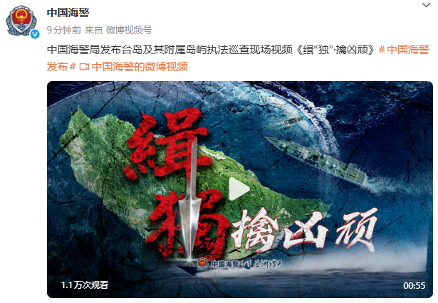 新京报讯 据中国海警官博消息,中国海警局发布台岛及其附属岛屿执法巡查现场视频《缉“独”·擒凶顽》。