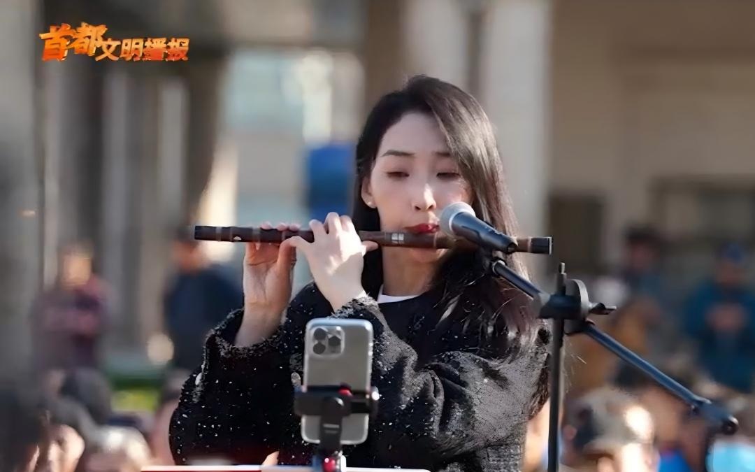 新京报讯(记者左琳)12月初,中国歌剧舞剧院竹笛、排箫青年演奏家孙楚泊在北京公园、广场演奏竹笛的视频持续刷屏,被市民亲切称为“国民闺女”。近日,她在首都文明办召开的文明实践工作座谈会上,谈及公益演出的初衷:“我的演出就是为了能让市民群众近距离地听到我的演奏,感受中国民乐的魅力。”