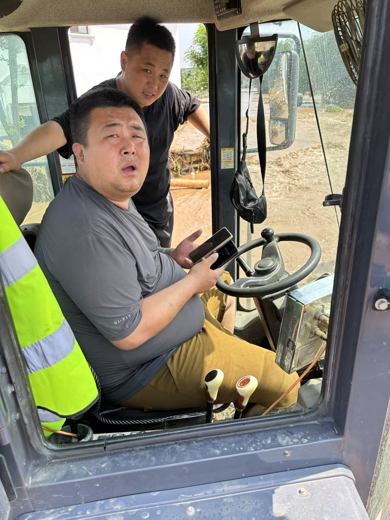 关键时刻,一辆铲车轰鸣着涉水而来。高大的车身在积水中“劈波斩浪”,高高举起的车斗,承载着受困群众的希望。