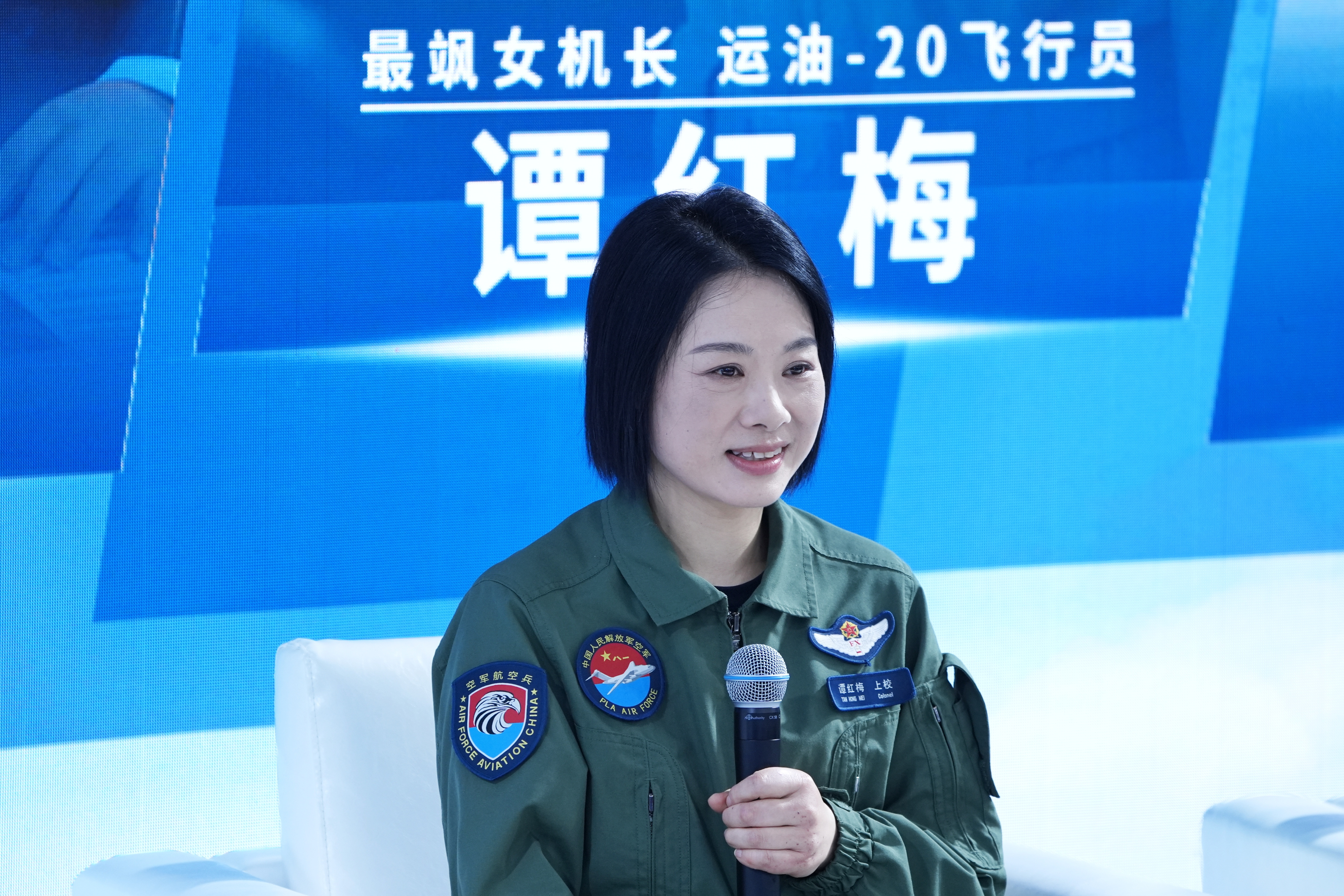 2025年9月20日,在位于吉林长春的2025空军航空开放活动和长春航空展现场,中国空军运油-20飞行员谭红梅分享飞行员成长心得。 中新社记者 张祥毅 摄 图/IC photo