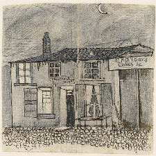 这幅名为《煤商咖啡馆》的小素描其实没什么特别的,但我之所以忍不住画了它,是因为看到这里这么多采煤工,他们真的是一群了不起的人。这个小房子离马车道不远,实际上是一家矿区边上的小酒馆,工人们在空闲的时候来吃吃面包,喝喝啤酒。