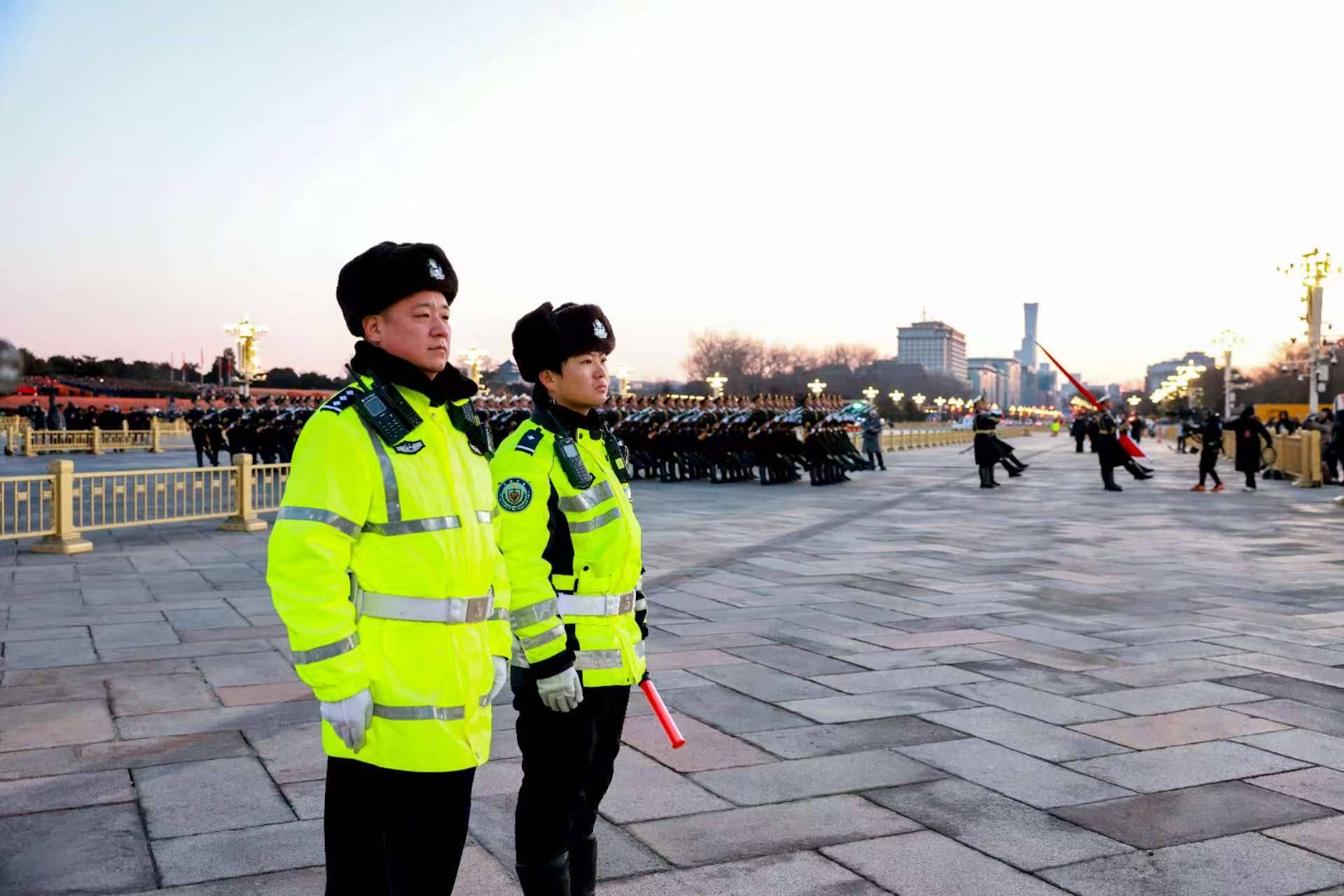 民警在天安门前执勤保障。北京警方供图