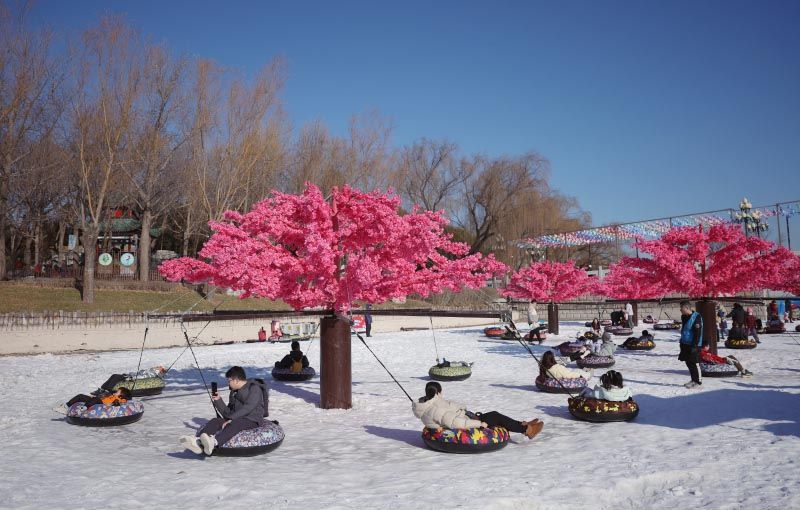 陶然亭冰雪嘉年华上,游客们在玩雪上项目。