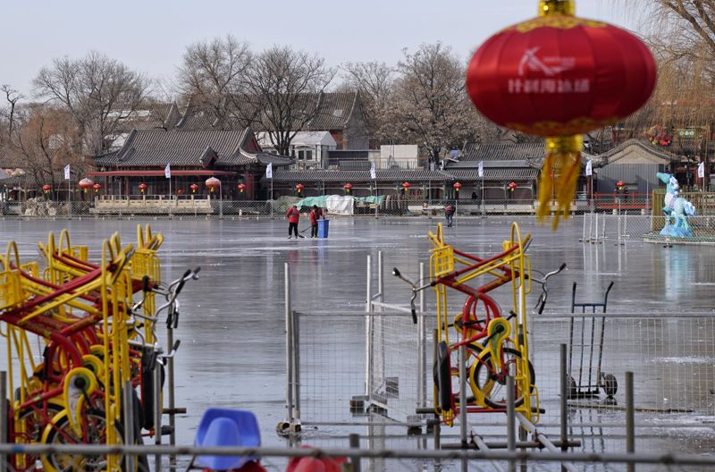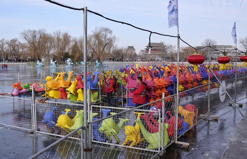 实拍什刹海冰场筹备现场:冰车擦亮了,就等冰够厚了!