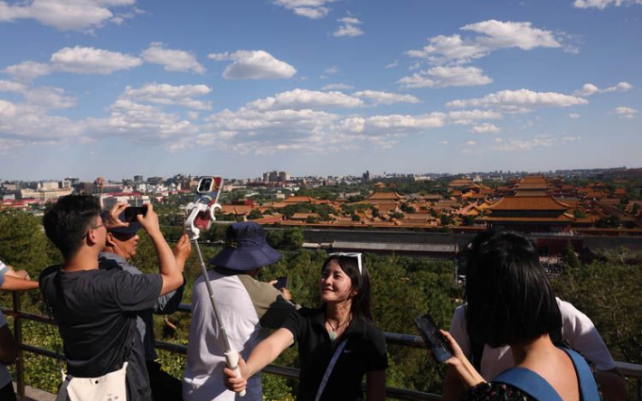 ▲游客登北京景山南望故宫。新京报记者 李木易 摄