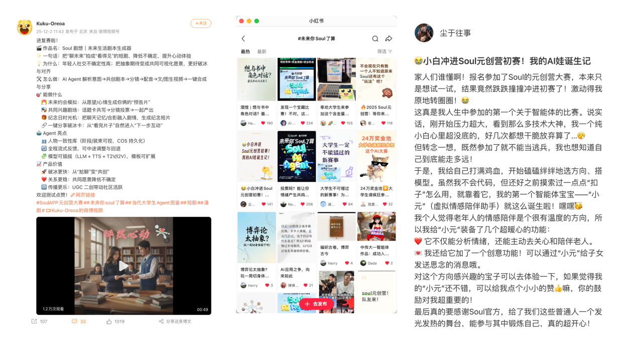 通过提供从创意到展示的完整支持路径,赛事在众多年轻创作者心中建立了一种关键认知:Soul App 是一个愿意倾听、并可为 AI 社交创意提供实践窗口的平台。这种基于共创过程所建立的信赖与认同,构成了 Soul App 在争夺未来用户与行业人才时的一种差异化的情感与心智连接。