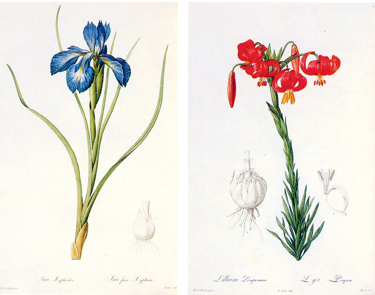 比利牛斯鸢尾(即英国鸢尾)和普罗旺斯百合(右)。《植物圣经》插图