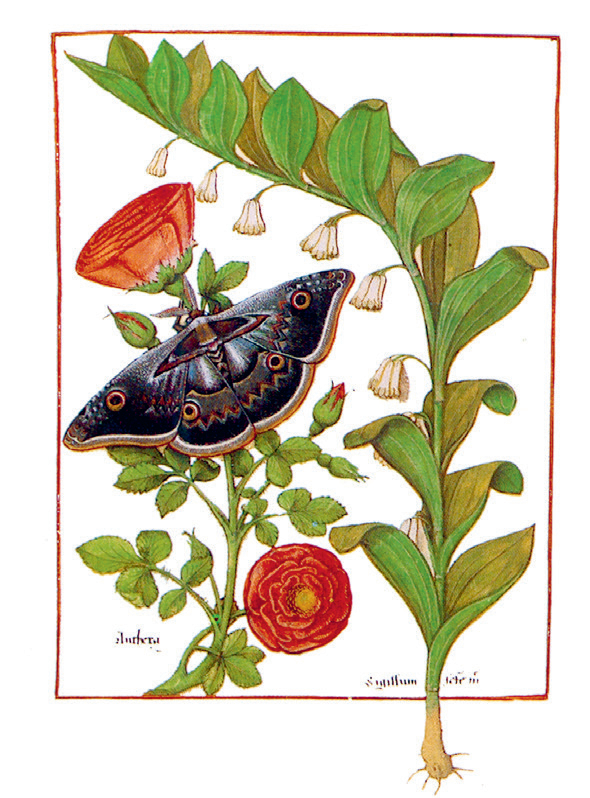 玉竹、蔷薇和大蚕蛾。《植物圣经》插图