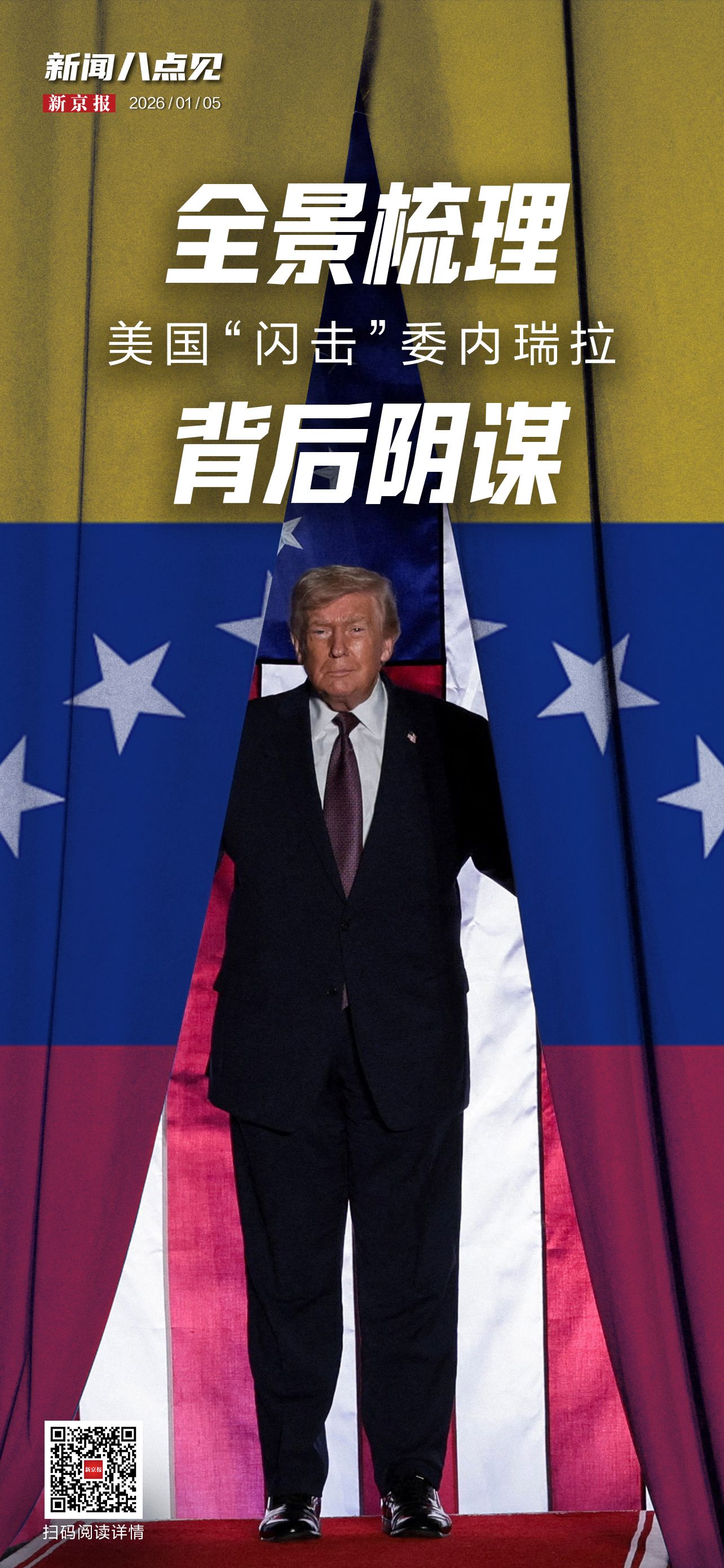 1月3日,美国对委内瑞拉发起大规模军事行动,突袭委首都加拉加斯并强掳委总统马杜罗及其夫人。美国总统特朗普称,美国将“管理”委内瑞拉直至实施“安全”过渡。此前,特朗普以打击贩毒为由在加勒比海域打击所谓“贩毒船”并部署兵力。视频>>>