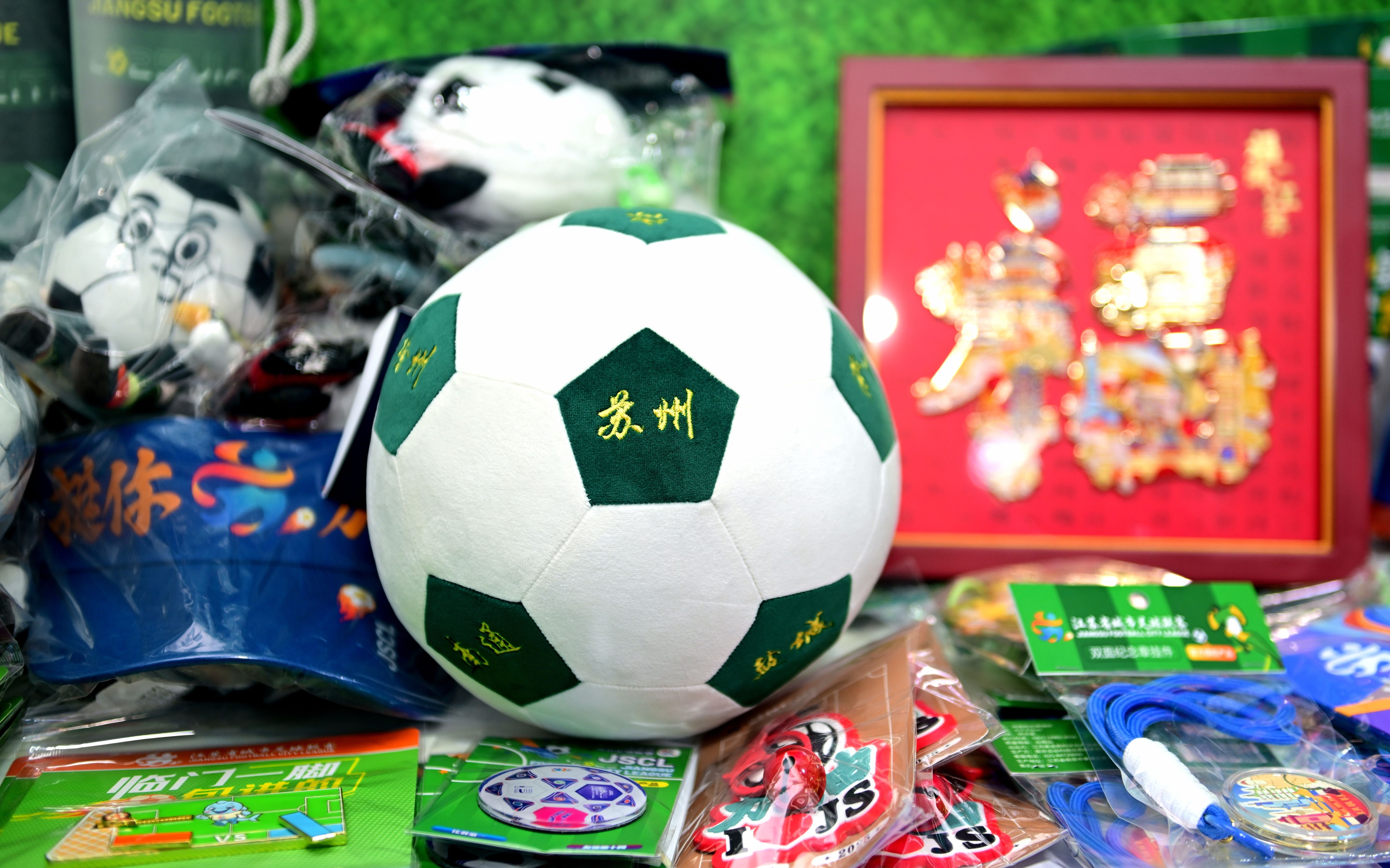 2025年11月9日,第八届中国国际进口博览会上,江苏馆人文交流展区“聚势苏超”板块展示江苏足球文化。图/IC photo